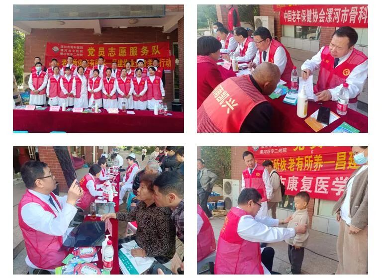 為推動學習貫徹習近平新時代中國特色社會主義思想主題教育走深走實,進一步弘揚中華民族尊老、愛老、敬老的傳統(tǒng)美德,滿足人民群眾對美好生活的向往,2023年重陽節(jié),漯河市骨科醫(yī)院(漯河醫(yī)專二附院)黨委組織由來自骨科、內(nèi)科、外科、婦產(chǎn)科、眼科、社會工作部的黨員志愿者、醫(yī)療專家21人到雙匯國際花園開展重陽節(jié)大型義診活動。