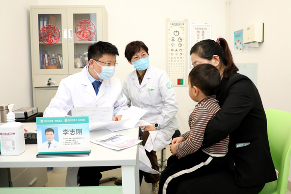 在李志剛教授專(zhuān)家門(mén)診,患兒小亮的媽媽激動(dòng)地說(shuō)“感謝李志剛教授為孩子親自做檢查,也非常感謝二院能夠提供這么好的一個(gè)機(jī)會(huì),讓咱們漯河的孩子在家門(mén)口都能夠享受到國(guó)家級(jí)專(zhuān)家教授的診治。”“一個(gè)月前,孩子在幼兒園體檢時(shí),發(fā)現(xiàn)雙眼的視力非常差,輾轉(zhuǎn)在漯河市幾家醫(yī)院進(jìn)行了檢查,確診為雙眼高度遠(yuǎn)視屈光不正引起的重度弱視,當(dāng)時(shí)非常的焦慮,為了盡快為孩子治好病,就在網(wǎng)上掛了李志剛教授的專(zhuān)家號(hào),但是非常難掛,一直掛不上。后來(lái)在網(wǎng)上看到李志剛教授前來(lái)市二院坐診的消息,一大早我們便趕來(lái)了。”小亮的媽媽說(shuō)。李志剛為患兒制定了詳細(xì)的治療計(jì)劃,并安排其在市二院視覺(jué)康復(fù)訓(xùn)練中心治療。