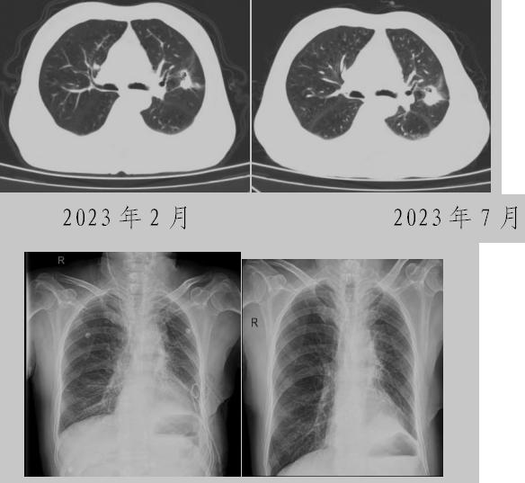 病例一:70多歲的患者王先生于2020年“急性心梗”入院時(shí)檢查發(fā)現(xiàn)了肺部結(jié)節(jié),王先生沒(méi)有在意,其間未規(guī)范復(fù)查胸部影像學(xué)檢查,于2023年2月份再次發(fā)作心絞痛時(shí),發(fā)現(xiàn)肺結(jié)節(jié)已發(fā)展成直徑約2.5cm實(shí)性腫塊,患者在家長(zhǎng)期口服“替格瑞洛及腸溶阿司匹林”等抗凝藥物,生活可自理,于冠狀動(dòng)脈二次植入支架后三個(gè)月,收住市二院胸外科,經(jīng)心內(nèi)科、麻醉科等多學(xué)科會(huì)診后,由胸外科主任王松陽(yáng)、副主任醫(yī)師薛飛及科室團(tuán)隊(duì)行“單孔胸腔鏡下左上肺癌根治術(shù)”,術(shù)后結(jié)合快速康復(fù)理念,三天后拔除胸管,一周出院。