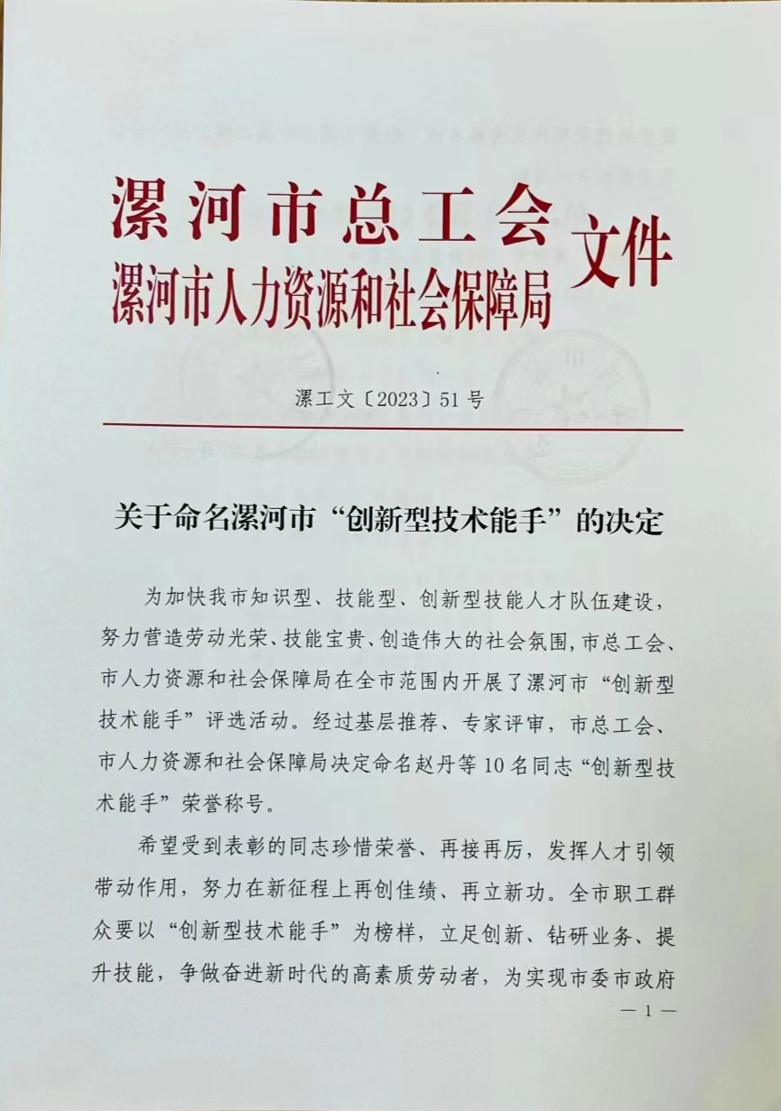 近日,漯河市人力資源局和社會保障局、漯河市總工會聯(lián)合印發(fā)《關(guān)于命名漯河市“創(chuàng)新型技術(shù)能手”的決定》(漯工文[2023]51號),經(jīng)過基層推薦、專家評審,全市10名同志受到表彰,其中市二院放療科副主任趙亮榮獲漯河市“創(chuàng)新型技術(shù)能手”稱號。