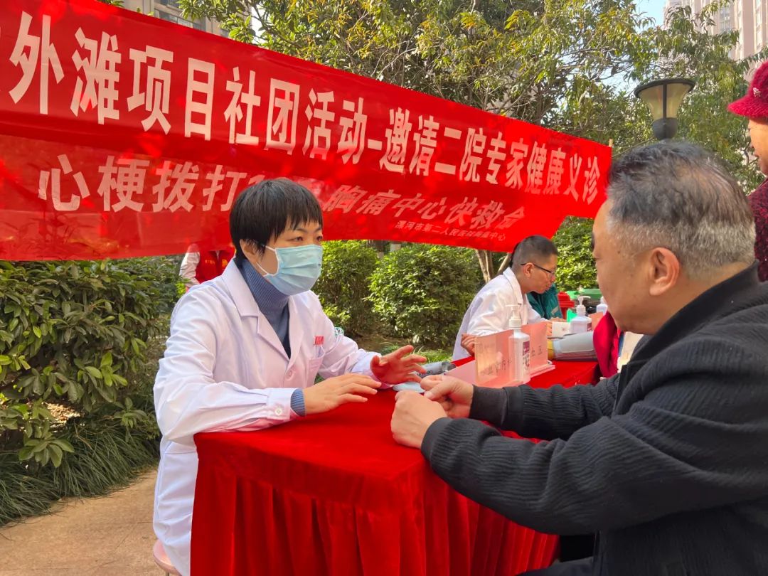 11月20日是我國心梗救治日,為更好地科普急救知識,提高群眾對心梗嚴(yán)重性與防治重要性的認(rèn)知,普及急性心肌梗死的規(guī)范化救治流程,當(dāng)天上午,市二院院長王瑾帶領(lǐng)心血管內(nèi)科、急診科等專家義診團(tuán)隊,到源匯區(qū)昌建外灘小區(qū)舉行“心梗撥打120,胸痛中心快救命”義診活動。