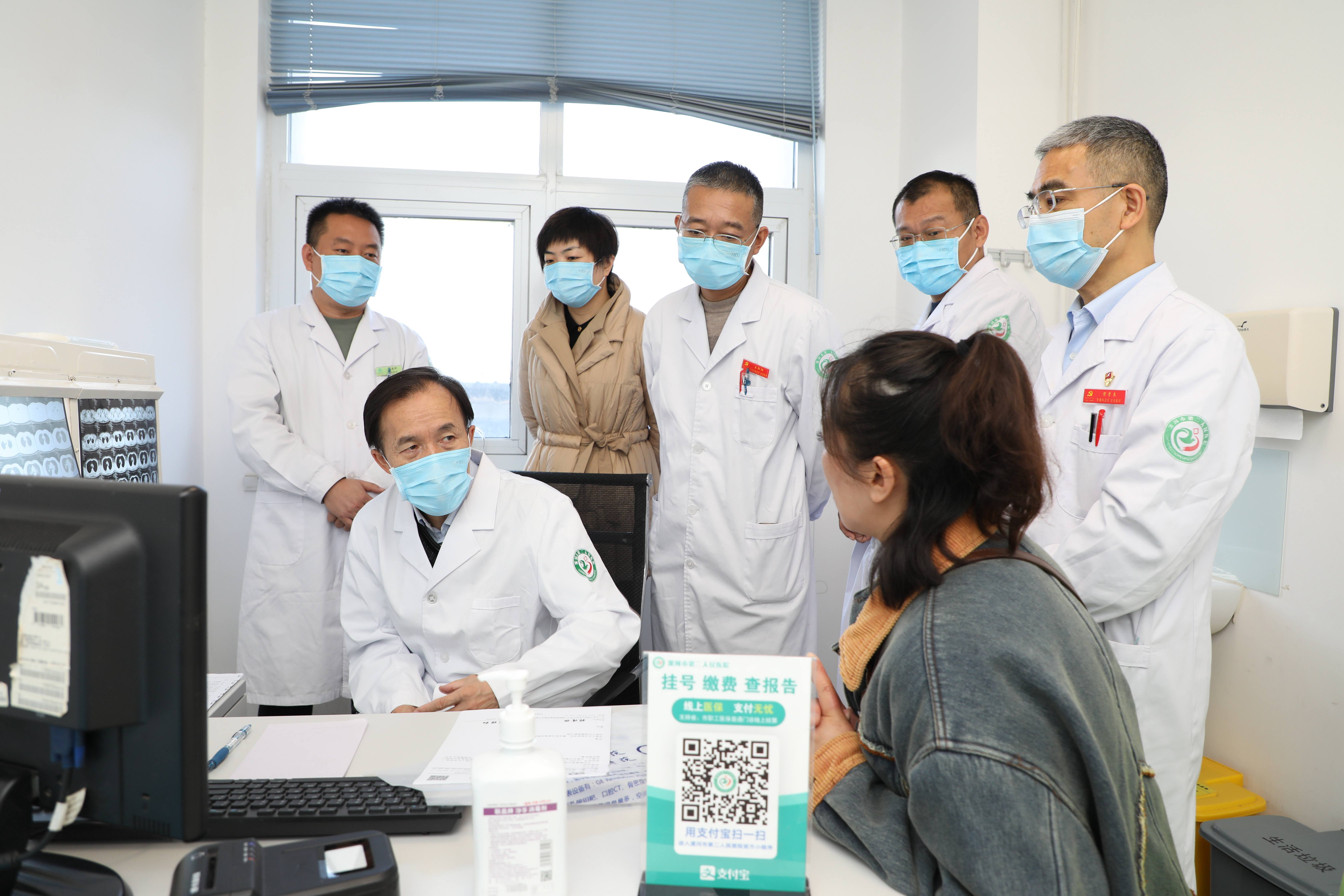 為了能給肺結節(jié)患者進行全面評估,準確判斷結節(jié)的性質(zhì),提供精準的診療方案。近日,鄭州大學一附院放射科副主任、主任醫(yī)師張永高教授蒞臨市二院肺結節(jié)門診,進行影像學會診、講座等,院長王瑾帶領肺結節(jié)團隊陪同。