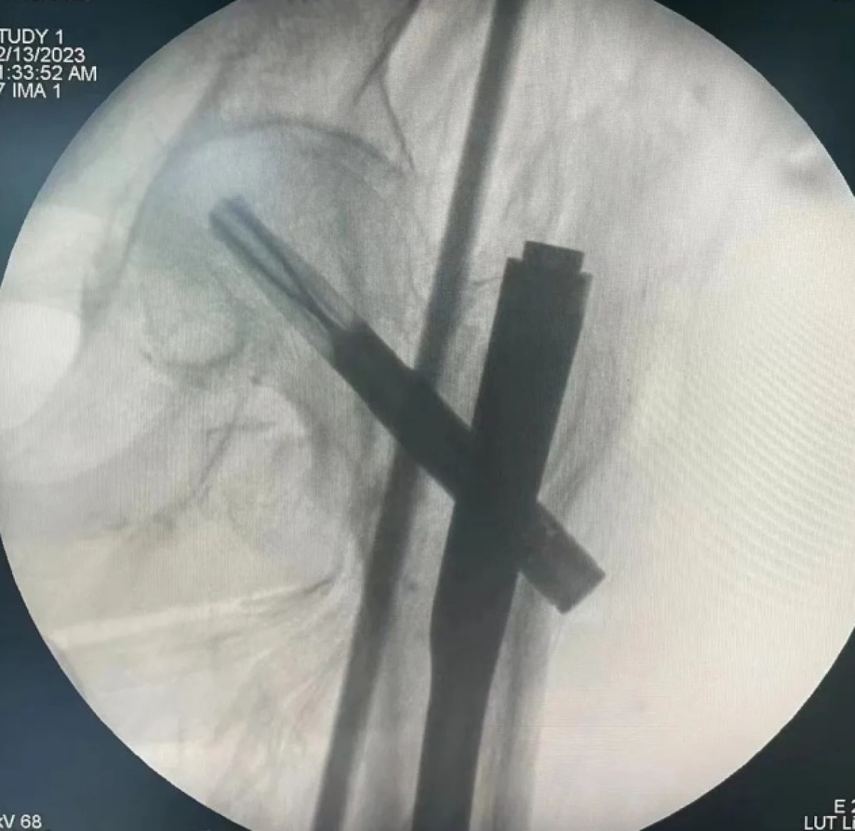 患者入室后,超聲引導(dǎo)下橈動脈穿刺置管實時監(jiān)測血壓,方便術(shù)中維持循環(huán)穩(wěn)定。麻醉科團(tuán)隊為患者順利施行超聲引導(dǎo)下左側(cè)高位髂筋膜阻滯,減少椎管內(nèi)麻醉時側(cè)身擺體位的疼痛。該患者腰椎退行病變及骨質(zhì)增生嚴(yán)重,椎管內(nèi)麻醉穿刺困難,麻醉科團(tuán)隊運(yùn)用超聲引導(dǎo)下椎管內(nèi)穿刺技術(shù)尋找合適的路徑,做到一針到位。在骨五科、手術(shù)室、麻醉科等科室醫(yī)護(hù)團(tuán)隊的通力配合下,成功為老人完成手術(shù)。手術(shù)過程順利,患者無疼痛等不適,術(shù)后平安返回病房。
