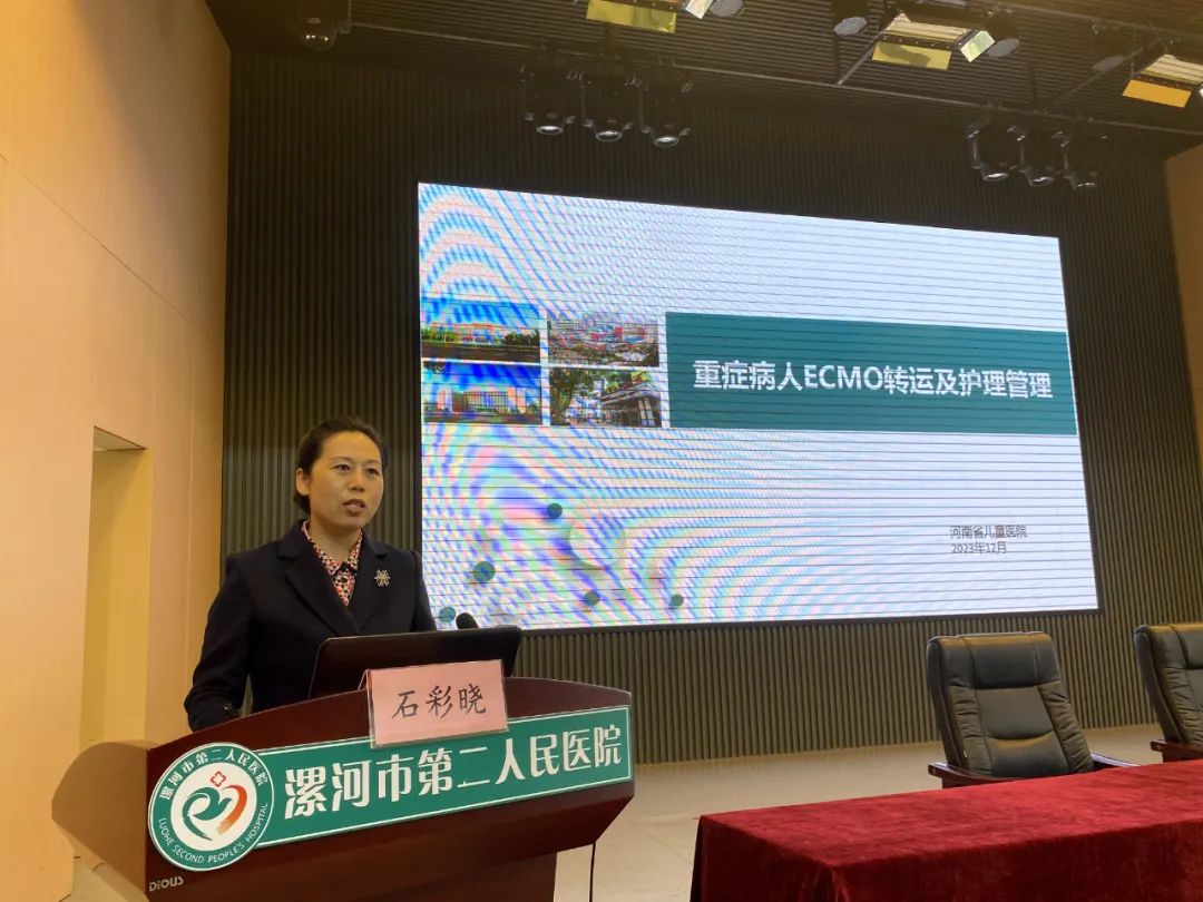 會議特邀河南省兒童醫(yī)院護理部主任、主任護師石彩曉教授為大家講授《重癥患兒ECMO轉(zhuǎn)運及護理》。石主任圍繞ECMO轉(zhuǎn)運團隊的建設(shè)、適應(yīng)癥與禁忌癥等進行深入探討和交流。