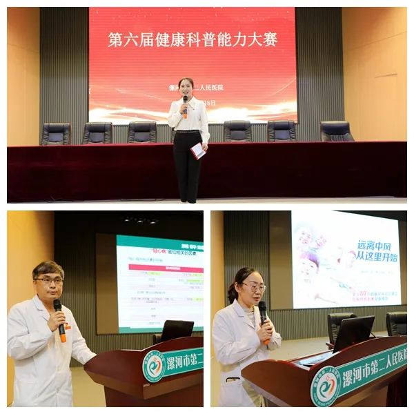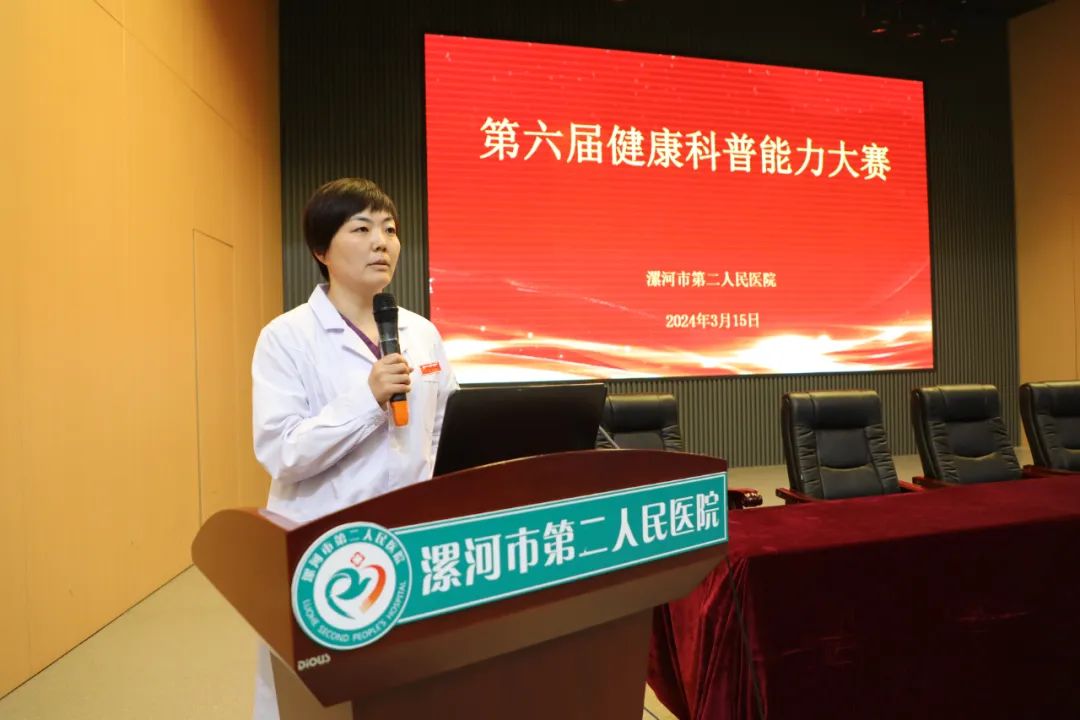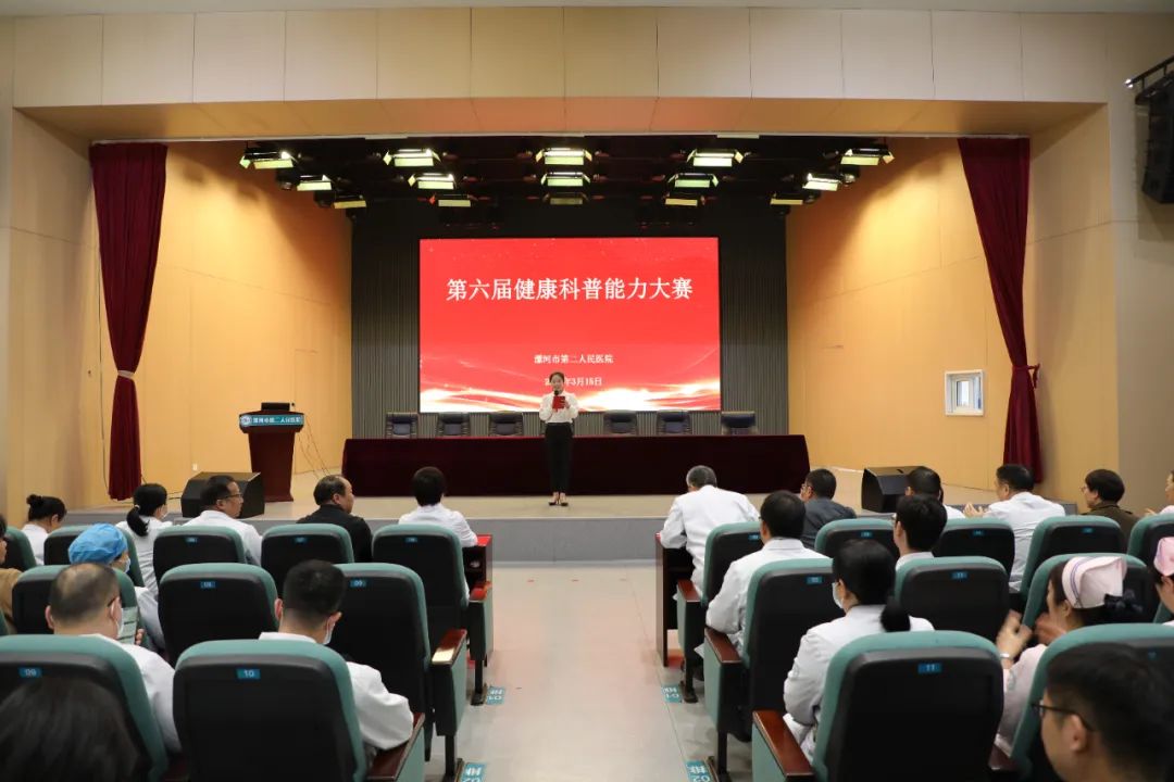 為進(jìn)一步提升醫(yī)務(wù)工作者的健康科普能力,加強醫(yī)務(wù)工作者對健康工作方式的思考和拓展,營造全民關(guān)注健康科普的良好氛圍,助力健康漯河建設(shè),3月15日下午,按照院黨委工作安排,市二院在12樓學(xué)術(shù)報告廳舉辦了第六屆健康科普能力大賽。院長王瑾,副院長郭長根、紀(jì)委書記孟德陽、工會主席李世學(xué)出席比賽現(xiàn)場,部分職能科長、科室主任、護(hù)士長和不值班醫(yī)護(hù)人員代表150余人參會。