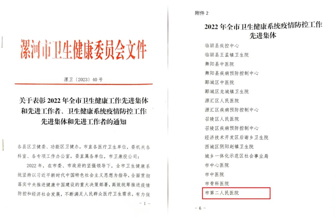 4月1日,漯河市衛(wèi)生健康委員會召開2023年全面從嚴(yán)治黨暨全市衛(wèi)生健康工作會議。會上,市二院被評為2022年全市衛(wèi)生健康系統(tǒng)疫情防控工作先進(jìn)集體,兒童醫(yī)療中心、心血管內(nèi)科被評為2022年全市衛(wèi)生健康工作先進(jìn)集體。
