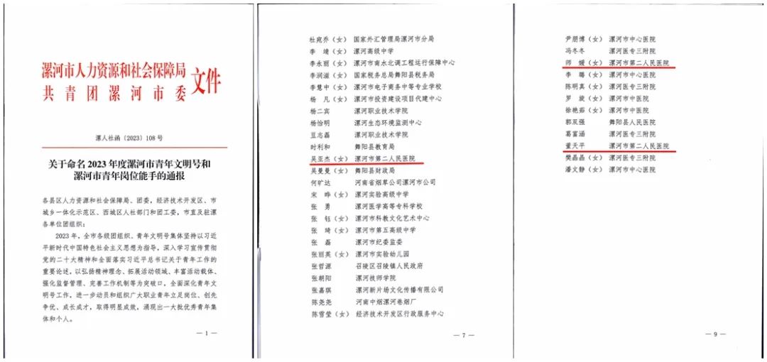 并肩奮戰(zhàn)展風采 挺膺擔當踐使命——市二院3人被評為2023年度漯河市青年崗位能手