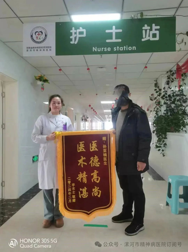3月4日一大早,一名患者家屬懷著一顆無比感恩的心來到了漯河市精神病醫(yī)院精神四科,感謝我院孫亞南醫(yī)生及全體醫(yī)護(hù)人員,并送上一面錦旗,他的患者是一名在校學(xué)生,在家不出門,不與人溝通,緊張、害怕,嚴(yán)重影響到日常生活,不能正常上學(xué),經(jīng)門診收住院,入院后,孫醫(yī)生耐心詢問患者的病情,根據(jù)患者的癥狀進(jìn)行病情評估,制定了詳細(xì)的治療方案,通過一個(gè)多月的治療,患者癥狀明顯改善。能與人交流了,臉上也露出了久違的笑容。家屬對醫(yī)院的診療和服務(wù)水平非常滿意!