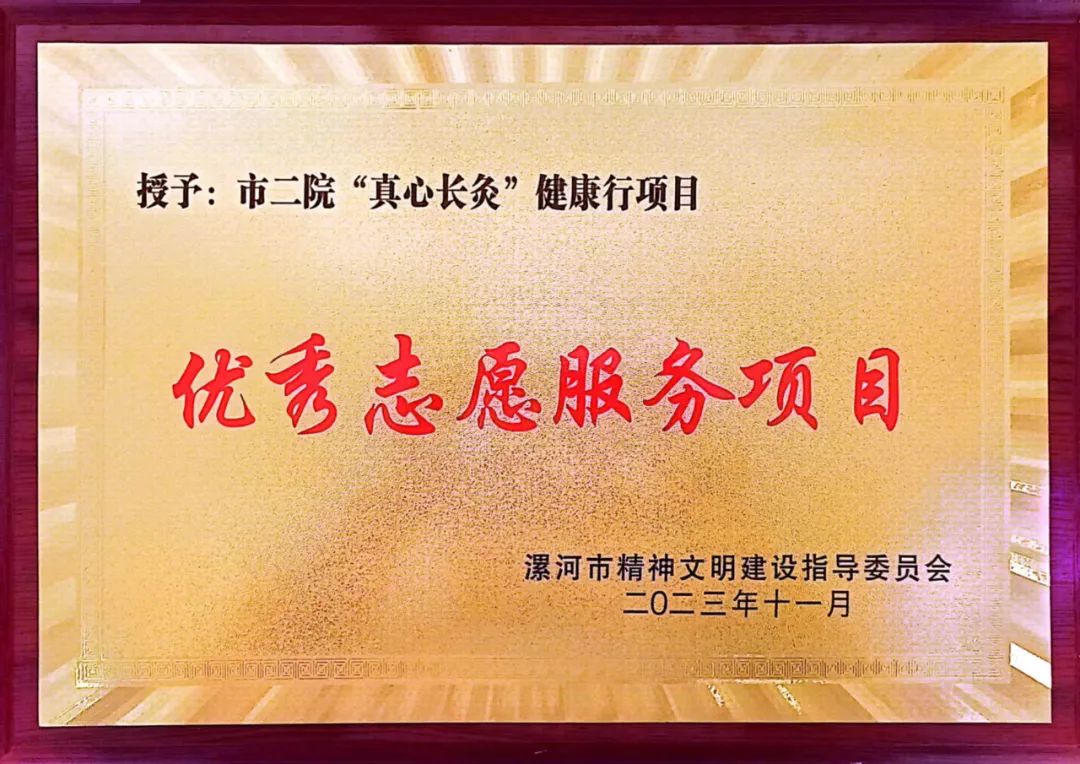 市二院“真心長(zhǎng)灸”健康行項(xiàng)目榮獲“漯河市優(yōu)秀志愿服務(wù)項(xiàng)目”