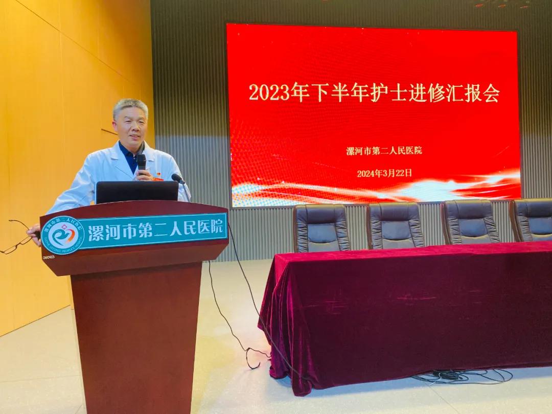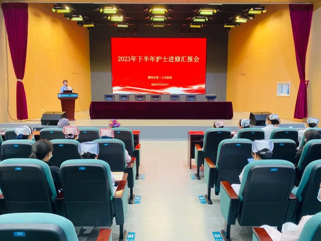 為進(jìn)一步激發(fā)護(hù)理人員學(xué)習(xí)工作積極性,分享學(xué)習(xí)經(jīng)驗(yàn),展示工作成效,有效推動(dòng)護(hù)理專(zhuān)科發(fā)展,3月22日,市二院在十二樓學(xué)術(shù)報(bào)告廳舉辦了2023年下半年護(hù)士進(jìn)修匯報(bào)會(huì)。副院長(zhǎng)郭長(zhǎng)根出席、各科室護(hù)士長(zhǎng)、不值班護(hù)士約150人參加了會(huì)議。