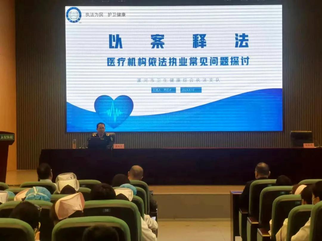 4月19日,市二院舉辦2024年度醫(yī)療衛(wèi)生法律法規(guī)專題培訓(xùn),特邀漯河市衛(wèi)生健康綜合執(zhí)法支隊(duì)副支隊(duì)長芮紅才前來授課。各臨床科室醫(yī)、護(hù)、技等300余人到會學(xué)習(xí)。本次培訓(xùn)會由副院長張曉東主持。