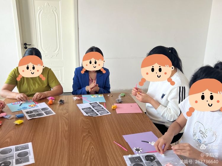輔導(dǎo)員帶領(lǐng)同伴們一起完成關(guān)于“勞動(dòng)最光榮”的主題粘土畫(huà)。