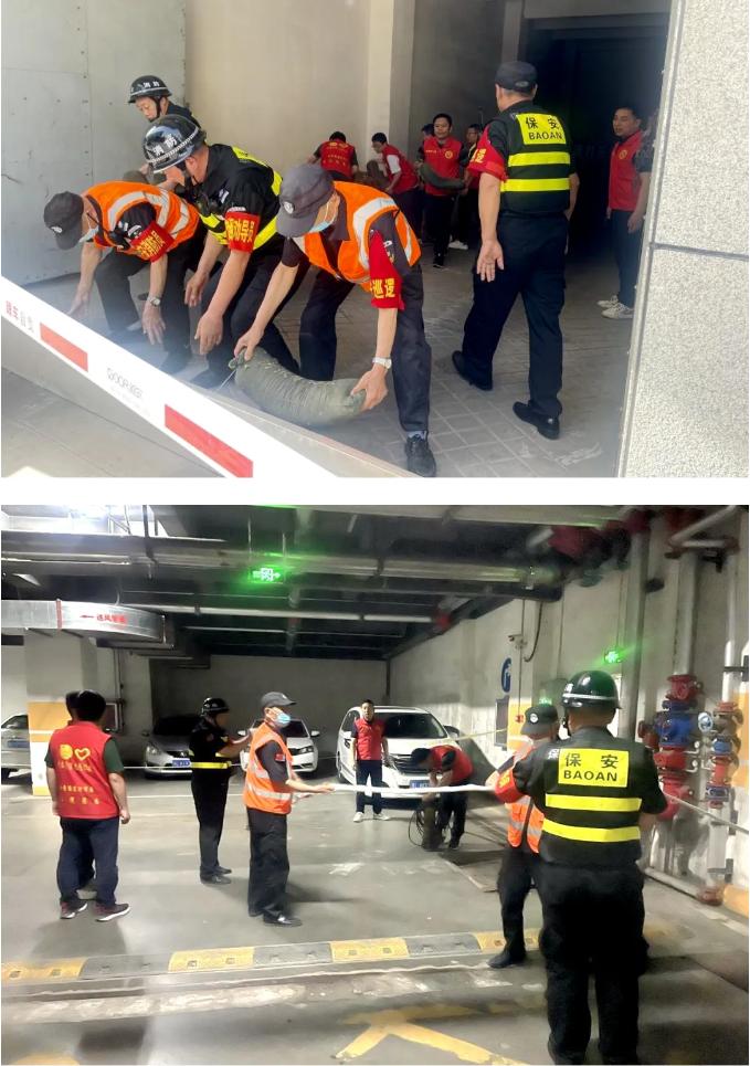 演練模擬漯河市區(qū)出現(xiàn)持續(xù)強(qiáng)降雨天氣,由于短時(shí)間降雨量過大,因管網(wǎng)排水不暢,造成雨水倒灌,致使地下車庫、配電間等重點(diǎn)地下空間區(qū)域進(jìn)水?,F(xiàn)場值班發(fā)現(xiàn)險(xiǎn)情,報(bào)告防汛總指揮,總指揮迅速啟動(dòng)防汛搶險(xiǎn)應(yīng)急預(yù)案,組織防汛搶險(xiǎn)預(yù)備隊(duì)進(jìn)行搶險(xiǎn),其他各組各司其職,同心協(xié)力處置險(xiǎn)情。