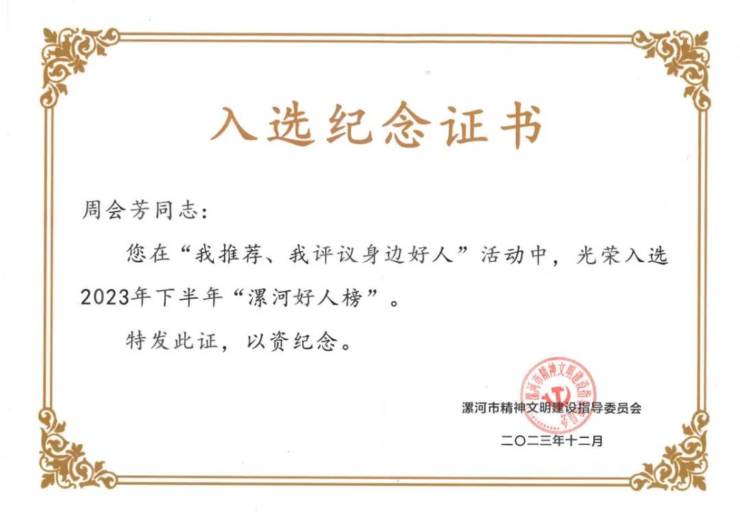 其中,來(lái)自漯河市骨科醫(yī)院(漯河醫(yī)專二附院、漯河市立醫(yī)院)的周會(huì)芳、徐景蓮光榮入選2023年下半年“漯河好人榜”!