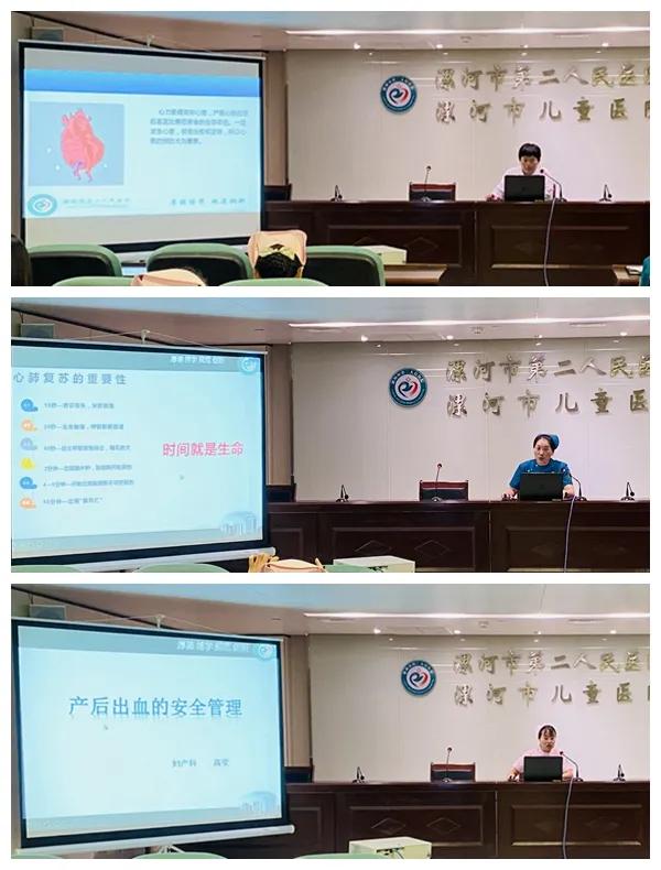 此次培訓分為理論知識講授和應(yīng)急操作技能培訓兩部分。心衰中心副主任醫(yī)師張偉燕對心衰病人的全周期健康管理進行了專業(yè)的講解。婦產(chǎn)科??谱o士張亞南對產(chǎn)后出血的早期診斷、出血量評估方法、處理、用藥等產(chǎn)后出血安全管理指南進行了深入的解讀。急診科護士長莫敬敬對成人及兒童高質(zhì)量心肺復蘇的標準以及AED的工作原理和操作流程進行了詳細地講解。整個理論培訓內(nèi)容豐富,專業(yè)性及指導性極強。