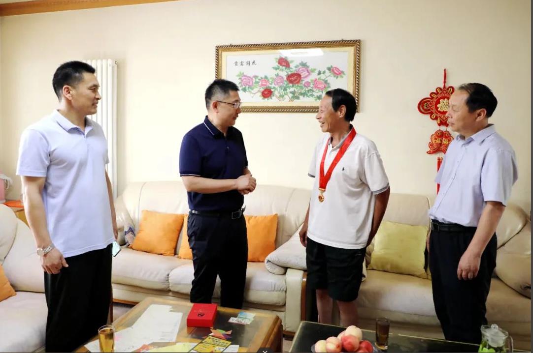 為慶祝中國共產黨成立103周年,弘揚黨的光榮傳統和優(yōu)良作風,6月25日上午,市衛(wèi)健委黨組副書記、副主任王向良,黨工委辦公室主任谷東方,市二院黨委委員、紀委書記孟德陽帶領相關職能科室人員走訪慰問醫(yī)院在黨50年老黨員謝學政,為他頒發(fā)了“光榮在黨50年”紀念章,并為其送去慰問品。