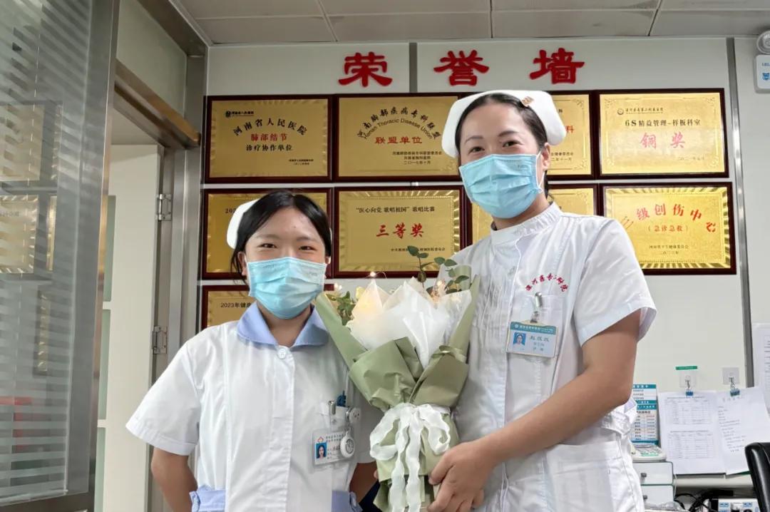 “趙老師,馬上就要轉(zhuǎn)科,真舍不得你,舍不得胸外科”,胸外科實(shí)習(xí)生龐晶晶依依不舍地對帶教老師趙蕊蕊說道,更是送上鮮花表達(dá)感謝。
