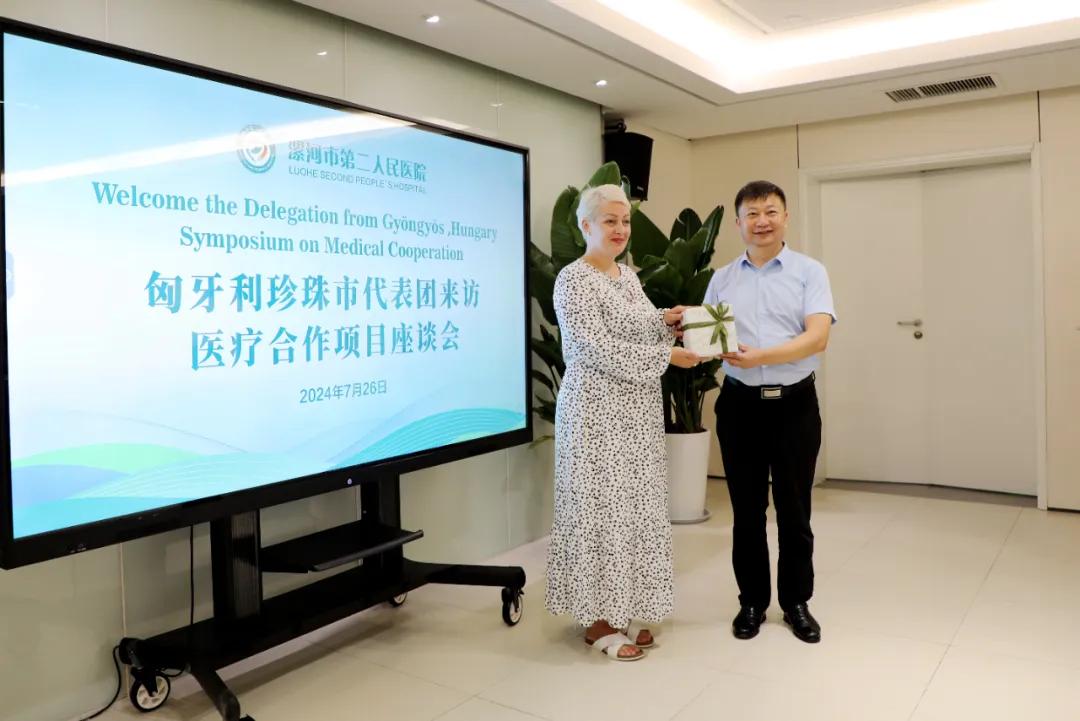 匈牙利珍珠市議會主席嘉柏瑞拉·森對醫(yī)院的熱情接待和精心安排表示衷心的感謝,對醫(yī)院中醫(yī)科、皮膚科、口腔科等科室高學(xué)歷醫(yī)療人員流利的英語講解和整潔規(guī)范的醫(yī)院環(huán)境印象深刻,通過此次參觀,深刻感受到了漯河市第二人民醫(yī)院在醫(yī)院管理、醫(yī)療服務(wù)、技術(shù)創(chuàng)新和人才培養(yǎng)等方面的卓越成就,表示將全力推動珍珠市醫(yī)療機構(gòu)與漯河市第二人民醫(yī)院建立更加緊密的合作關(guān)系,并盛情邀請醫(yī)療同行赴匈開展深度洽談合作,共同為全球醫(yī)療事業(yè)的發(fā)展貢獻力量。