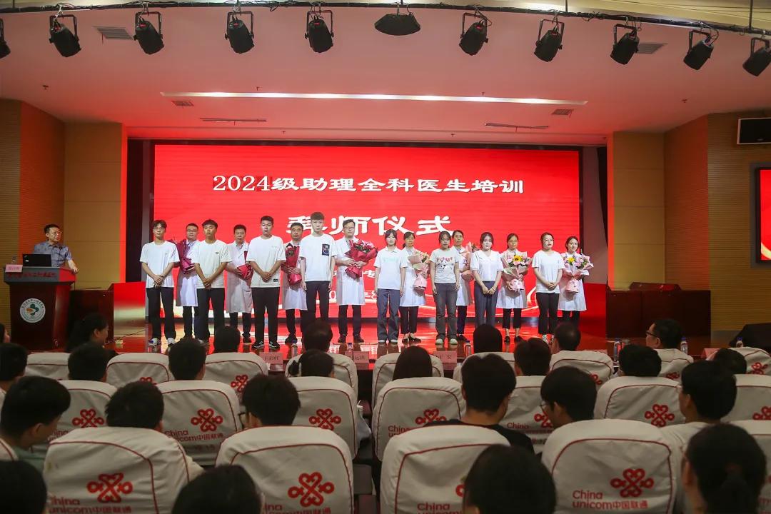市衛(wèi)健委副主任于宏、市衛(wèi)健委醫(yī)政科科長(zhǎng)王彩紅、院黨委書記柴運(yùn)洪、院長(zhǎng)李奎、副院長(zhǎng)吳廣良,院紀(jì)委書記、全科基地主任劉國(guó)鋒,各臨床科室主任及教學(xué)秘書、導(dǎo)師代表,2023級(jí)、2024級(jí)全體助理全科醫(yī)生參加本次開班典禮,典禮由劉國(guó)鋒主持。