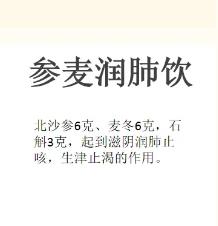 北沙參6克、麥冬6克,滋陰潤(rùn)肺止咳,生津止渴的作用;肺陰不足以后會(huì)影響相鄰臟腑,最容易受影響的就是心和脾胃,可以加些百合、石斛。(皮膚科 鞏潁)