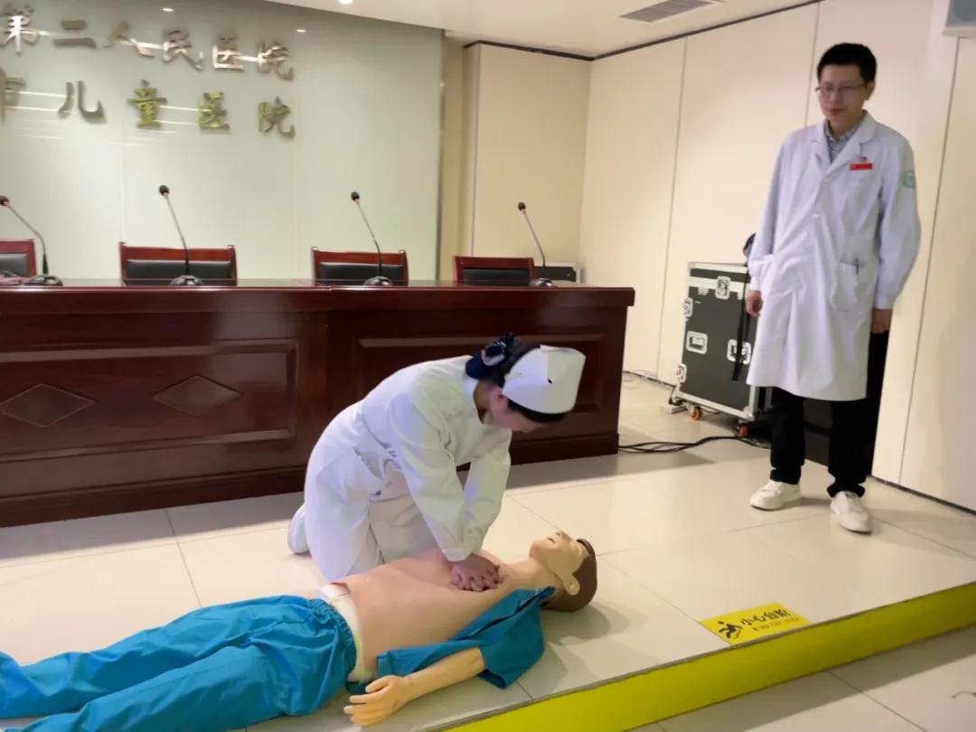 原野醫(yī)生著重介紹了胸痛患者的院內(nèi)緊急救治程序及心肺復(fù)蘇術(shù)的三個(gè)核心步驟,并借助模型人進(jìn)行了細(xì)致、規(guī)范的現(xiàn)場(chǎng)演示,同時(shí),他對(duì)心肺復(fù)蘇術(shù)進(jìn)行了深入指導(dǎo),展示了急救的完整過(guò)程,讓急救知識(shí)更加直觀易懂。經(jīng)過(guò)本次培訓(xùn),導(dǎo)診工作人員掌握了急救相關(guān)知識(shí)和操作技能,為積極參加急救行動(dòng)增強(qiáng)了信心。