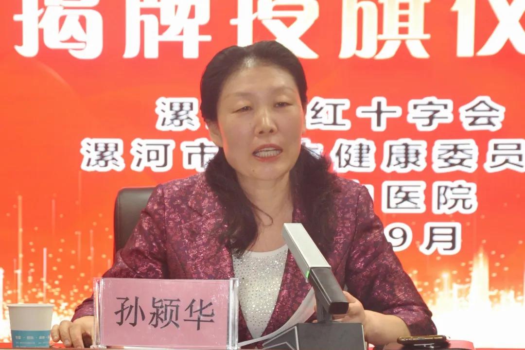 李世杰宣讀《漯河市紅十字會(huì)關(guān)于同意成立漯河市中醫(yī)院紅十字志愿服務(wù)隊(duì)的批復(fù)》文件。孫潁華、王向良為漯河市中醫(yī)院紅十字志愿服務(wù)隊(duì)揭牌。孫潁華向漯河市中醫(yī)院紅十字志愿服務(wù)隊(duì)授旗。漯河市中醫(yī)院紅十字志愿服務(wù)隊(duì)代表李強(qiáng)進(jìn)行表態(tài)發(fā)言并作出承諾,將充分發(fā)揮紅十字志愿者的優(yōu)勢(shì),為更多需要幫助的人提供醫(yī)療援助和志愿服務(wù)。