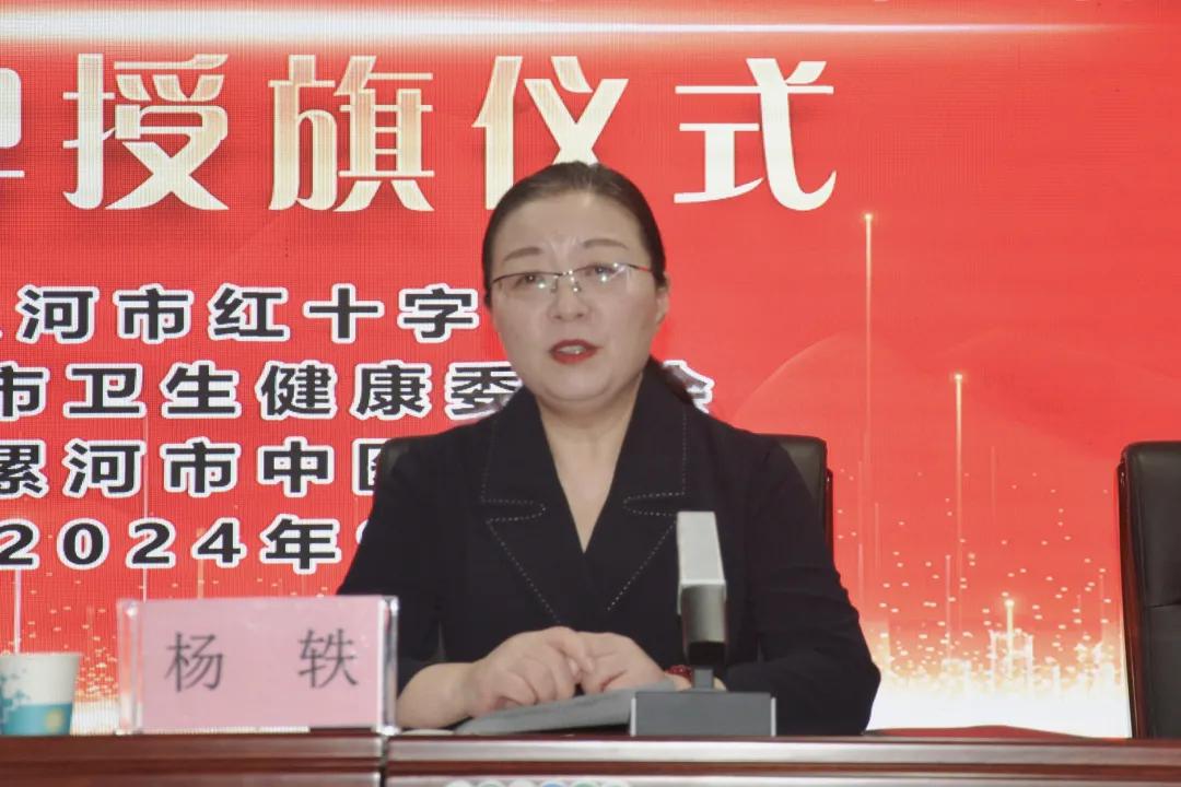 為積極響應(yīng)社會(huì)公益號(hào)召,弘揚(yáng)紅十字精神,促進(jìn)醫(yī)療衛(wèi)生與志愿服務(wù)深度融合,2024年9月25日上午,市紅十字會(huì)、市衛(wèi)健委聯(lián)合市中醫(yī)院在醫(yī)院門診四樓學(xué)術(shù)報(bào)告廳隆重舉辦“喜迎國(guó)慶 志愿同行——漯河市中醫(yī)院紅十字志愿服務(wù)隊(duì)揭牌授旗儀式”。市紅十字會(huì)黨組書記、常務(wù)副會(huì)長(zhǎng)孫潁華,市衛(wèi)健委黨組副書記、副主任王向良,市中醫(yī)院黨委書記楊軼,市中醫(yī)院黨委副書記、副院長(zhǎng)楚勝,市紅十字會(huì)黨組成員、副會(huì)長(zhǎng)李世杰出席揭牌授旗儀式。各縣區(qū)、功能區(qū)紅十字會(huì)負(fù)責(zé)同志、市直醫(yī)療衛(wèi)生機(jī)構(gòu)和漯河醫(yī)專各附屬醫(yī)院分管領(lǐng)導(dǎo)以及市中醫(yī)院志愿者職工代表近200人參加。會(huì)議由楚勝主持。