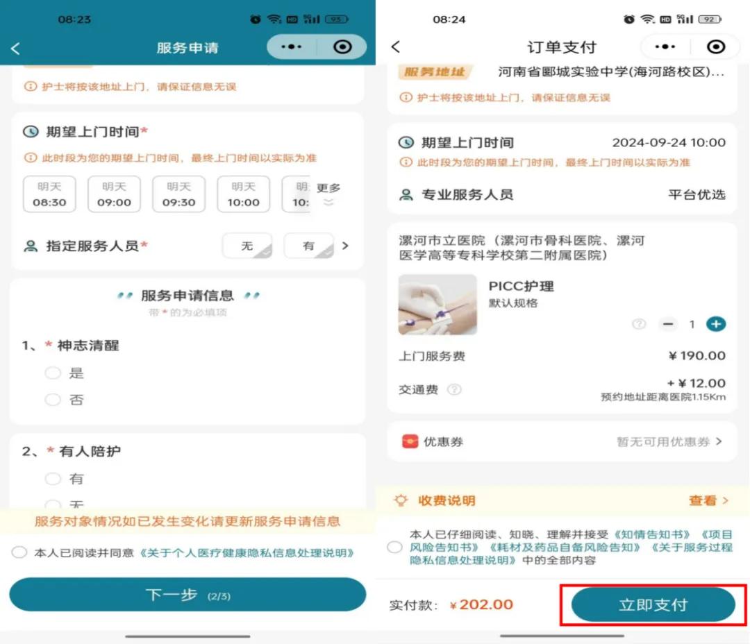 4.各項信息填寫后,支付訂單,護士接單后會與下單人電話聯(lián)系再次確認。