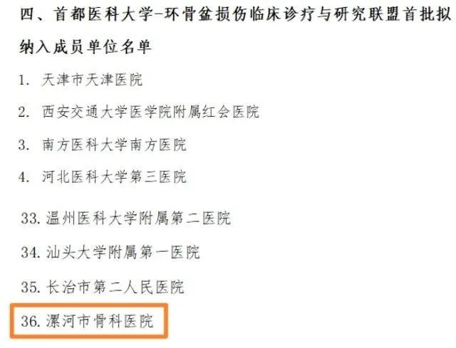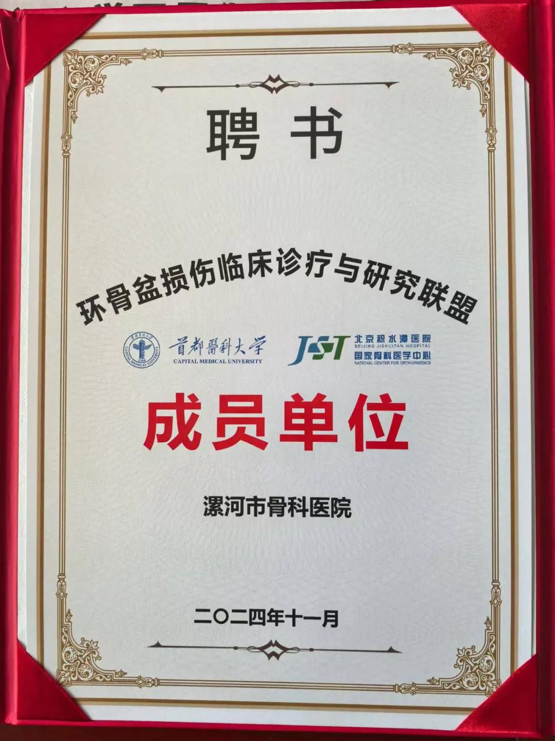 此次受邀加入該聯(lián)盟,為我院環(huán)骨盆損傷治療的進(jìn)一步發(fā)展提供了重要契機(jī),也標(biāo)志著我院在骨盆微創(chuàng)救治領(lǐng)域邁上新臺(tái)階。未來,漯河市骨科醫(yī)院將充分發(fā)揮聯(lián)盟成員優(yōu)勢(shì),與聯(lián)盟各單位實(shí)現(xiàn)資源共享、優(yōu)勢(shì)互補(bǔ)、協(xié)同發(fā)展,并以此推動(dòng)本院以及漯河市及周邊地區(qū)環(huán)骨盆損傷臨床診療領(lǐng)域的高質(zhì)量發(fā)展,造福更多的患者。(盧 闖 劉 旭 袁錦鈺)