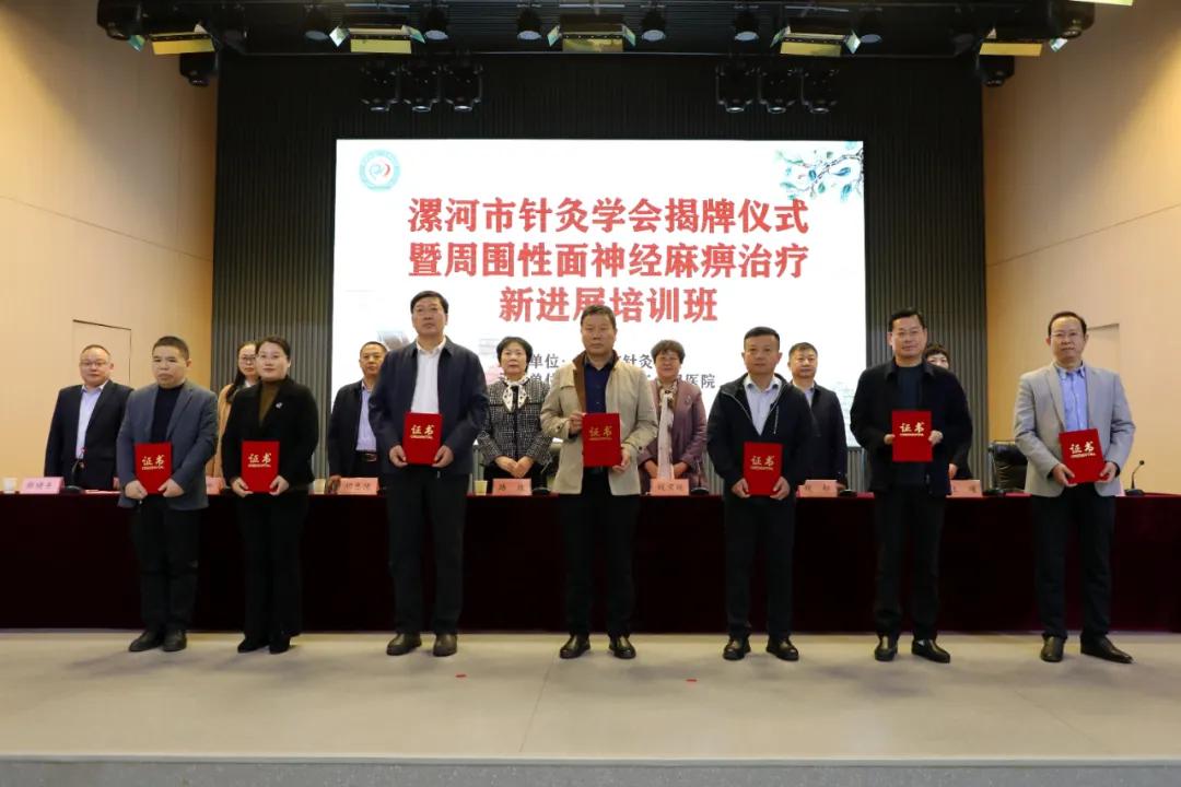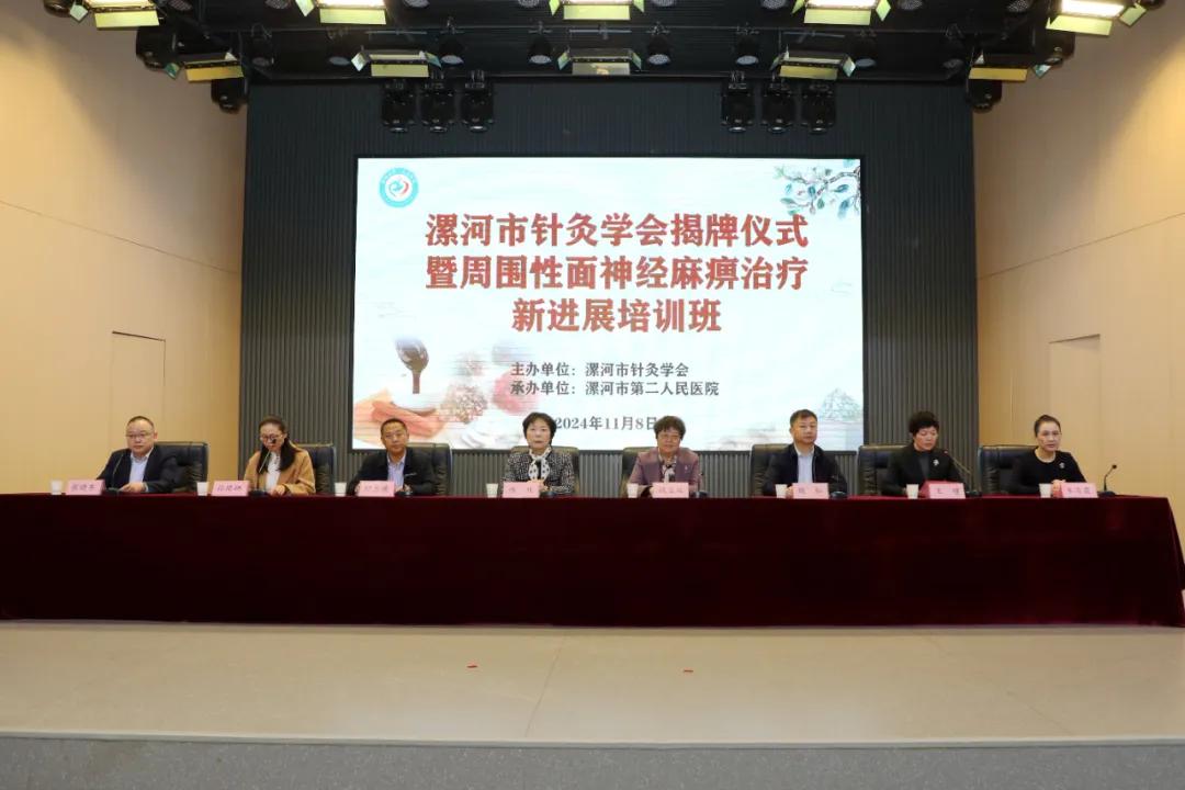 11月8日,舉行了漯河市針灸學(xué)會揭牌儀式暨周圍性面神經(jīng)麻痹治療新進展培訓(xùn)班。河南省針灸學(xué)會會長路玫教授、副會長錢寶延教授,市衛(wèi)健委副主任胡忠德、中醫(yī)科科長孫艷娜,市二院黨委書記魏松、院長王瑾及班子成員,市針灸學(xué)會會長、市二院中醫(yī)針灸科主任朱青霞等參加揭牌儀式。儀式由副院長張曉東主持。