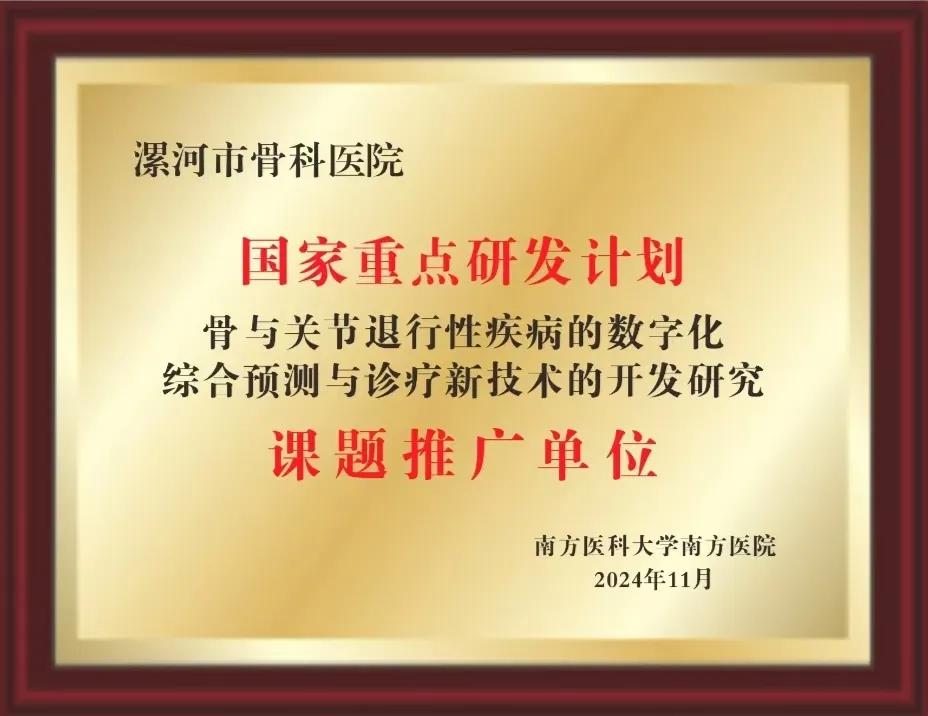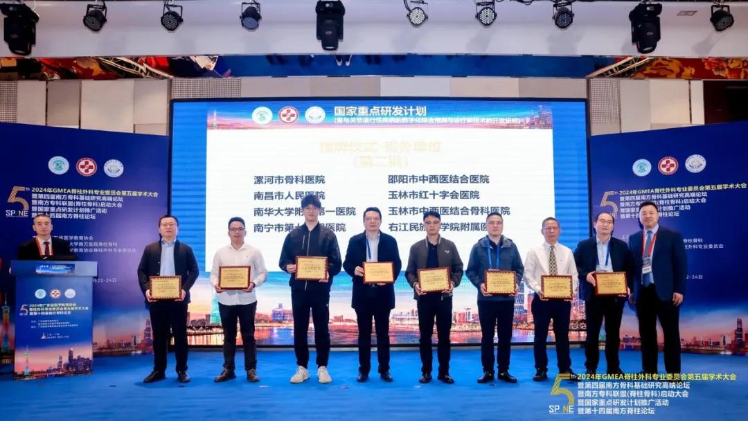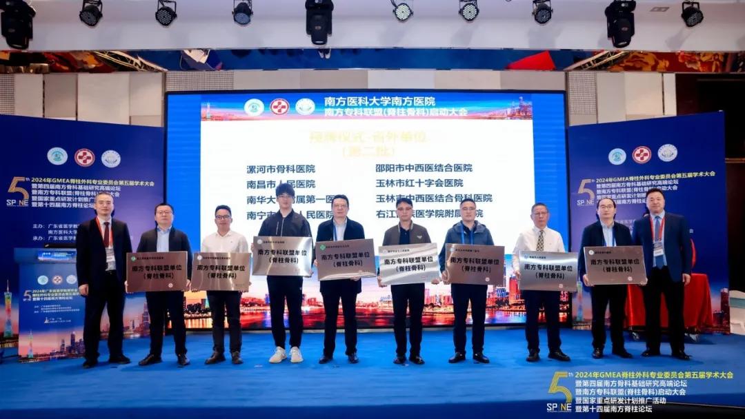 11月22日—24日,由廣東省醫(yī)學(xué)教育協(xié)會、南方醫(yī)科大學(xué)南方醫(yī)院脊柱骨科聯(lián)合主辦,廣東省醫(yī)學(xué)教育協(xié)會脊柱外科專業(yè)委員會承辦的“2024年GMEA脊柱外科專業(yè)委員會第五屆學(xué)術(shù)大會”在廣東廣州成功舉行。在南方??坡?lián)盟(脊柱骨科)啟動大會暨國家重點研發(fā)計劃推廣活動上,漯河市骨科醫(yī)院(漯河醫(yī)專二附院、漯河市立醫(yī)院)榮獲“國家重點研發(fā)計劃-骨與關(guān)節(jié)退行性疾病的數(shù)字化綜合預(yù)測與診療新技術(shù)的開發(fā)研究課題推廣單位”與“南方??坡?lián)盟單位(脊柱外科)”雙項授牌!