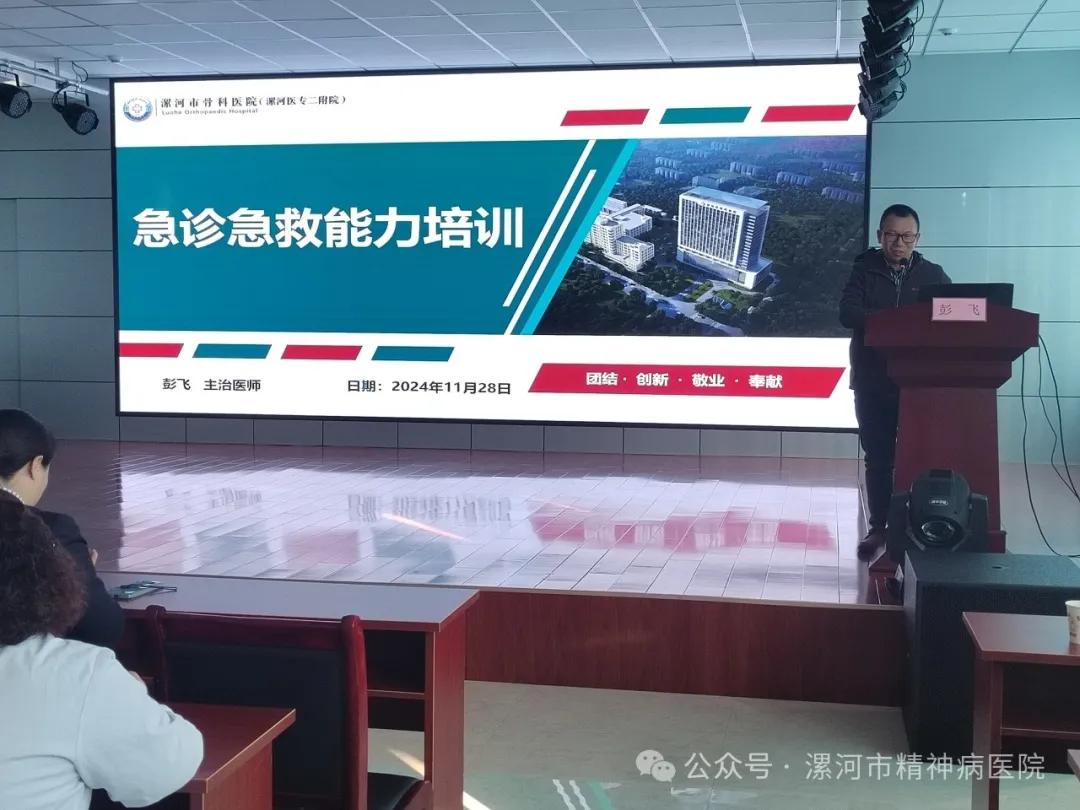 為提升漯河市精神病醫(yī)院急診急救處置能力,11月28日下午,由漯河市醫(yī)專二附院韓書(shū)環(huán)主任帶領(lǐng)宣講專家團(tuán)隊(duì),為該院專業(yè)技術(shù)人員進(jìn)行了急診急救相關(guān)知識(shí)及實(shí)操技能的培訓(xùn)。