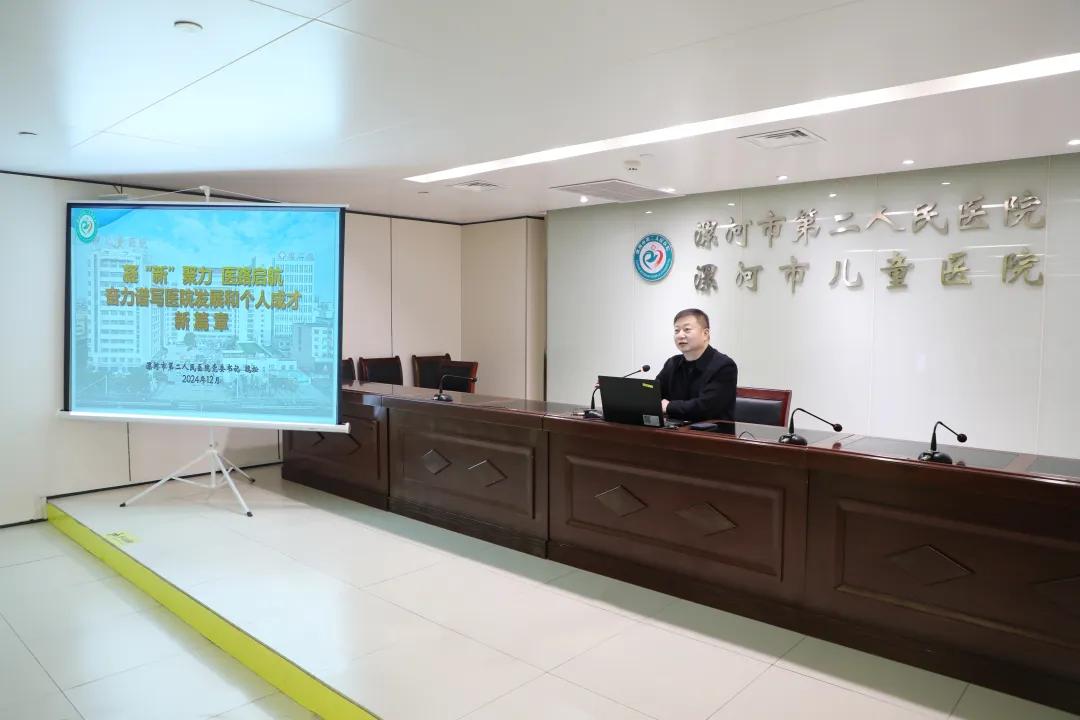 黨委書記魏松以《凝“新”聚力 “醫(yī)”路啟航 奮力譜寫醫(yī)院發(fā)展和個人成才新篇章》為題,從醫(yī)院的發(fā)展歷程、學(xué)科建設(shè)以及未來期望等方面為新入職人員上了精彩的第一課。