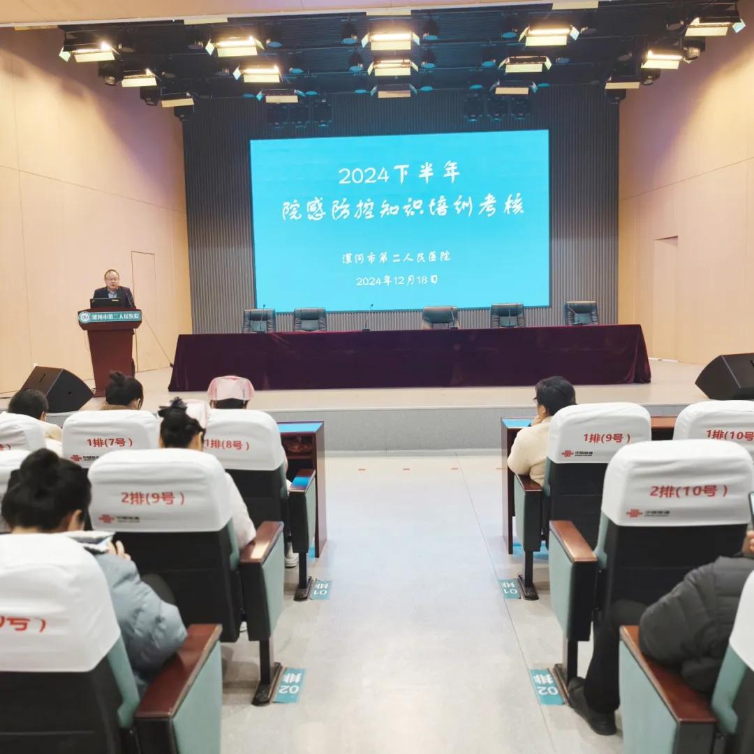 為進一步強化全院醫(yī)務人員感染防控意識,提高防控水平,12月18日下午,市二院在12樓學術報告廳開展2024下半年院感防控知識培訓、考核,全院醫(yī)療、醫(yī)技、藥劑及護理共計500余人參加了會議。