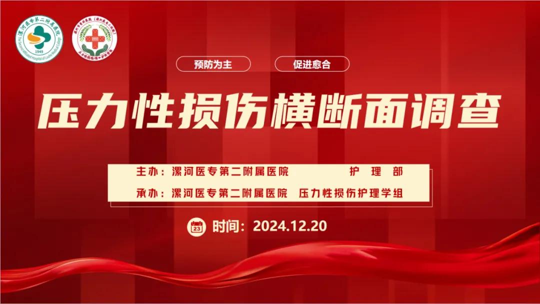 為進一步落實國家患者安全專項行動方案,持續(xù)提高護理質(zhì)量,漯河市骨科醫(yī)院(漯河醫(yī)專二附院、漯河市立醫(yī)院)于12月20日開展了壓力性損傷橫斷面調(diào)查。本次調(diào)查由醫(yī)院護理部指導,壓力性損傷護理學組主導發(fā)布,旨在通過科學的橫斷面研究方法,對醫(yī)院內(nèi)特定人群的壓力性損傷現(xiàn)狀進行全面而深入的分析,為后續(xù)的預防和治療工作提供堅實的數(shù)據(jù)支撐,為持續(xù)改進護理質(zhì)量、保障患者安全提供科學依據(jù)。