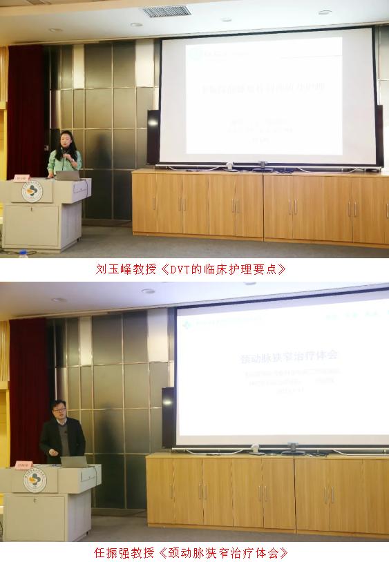 學(xué)術(shù)會(huì)上,宋燕教授、苗仁英教授、楊博教授、付一群教授、牛曉陽教授、劉衛(wèi)萍教授、劉玉峰教授、漯河醫(yī)專二附院神經(jīng)外科副主任振強(qiáng)教授、漯河醫(yī)專二附院急診外科副主任張曉光教授、漯河醫(yī)專二附院急診外科程書強(qiáng)教授等分別圍繞《頸動(dòng)脈狹窄的指南解讀》《淺談?lì)i動(dòng)脈狹窄的外科治療一術(shù)式選擇的進(jìn)階之路》《下肢動(dòng)脈硬化閉塞癥腔內(nèi)治療策略及病例分享》《靜脈曲張的微創(chuàng)化診療》《VTE防控體系構(gòu)建及病例分享》《DVT的臨床護(hù)理要點(diǎn)》《頸動(dòng)脈狹窄治療體會(huì)》《頸深淋巴-靜脈吻合術(shù)治療阿爾茨海默病》《下肢深靜脈血栓的診治》等為題,為現(xiàn)場(chǎng)血管外科同仁進(jìn)行了精彩的學(xué)術(shù)報(bào)告。學(xué)術(shù)會(huì)上,與會(huì)觀眾積極圍繞相關(guān)課題向授課專家提問,并進(jìn)行探討交流,現(xiàn)場(chǎng)始終充滿濃厚的學(xué)術(shù)氛圍。