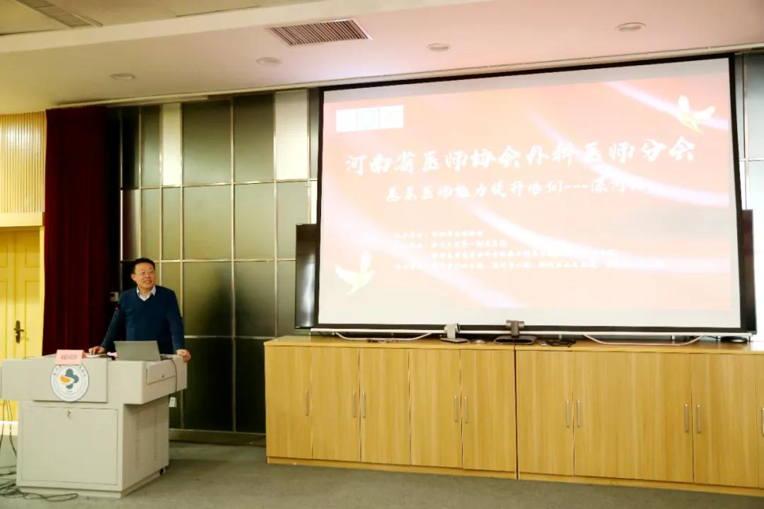 院黨委書記柴運(yùn)洪在致辭中代表漯河醫(yī)專二附院向出席會(huì)議的各位專家教授表示熱烈的歡迎。他指出,血管外科作為一門新興學(xué)科,專注于診斷、治療和管理與血管系統(tǒng)相關(guān)的疾病和病變。隨著心血管疾病負(fù)擔(dān)的增加、血管疾病發(fā)病率的上升、技術(shù)不斷進(jìn)步以及中國(guó)血管外科領(lǐng)域的崛起,血管外科在未來將扮演更加重要的角色,同時(shí)也為醫(yī)學(xué)研究和創(chuàng)新提供廣闊的發(fā)展空間,充分發(fā)揮行業(yè)帶頭人的示范引領(lǐng)作用。我院血管外科正處于快速發(fā)展的階段,作為河南省醫(yī)師協(xié)會(huì)外科分會(huì)基層醫(yī)師能力提升培訓(xùn)會(huì)議的首站,我們倍感榮幸和鼓舞。他希望以鄭州大學(xué)第一附屬醫(yī)院血管外科宋燕教授工作室揭牌為契機(jī),參會(huì)人員能夠在專家教授的傾情分享下,共同學(xué)習(xí)血管外科的新進(jìn)展,激發(fā)學(xué)科發(fā)展的新思路,不斷提升自己在血管外科領(lǐng)域的執(zhí)業(yè)水平和服務(wù)質(zhì)量。