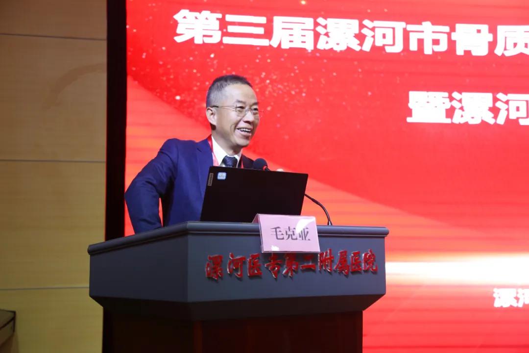 中國人民解放軍總醫(yī)院毛克亞教授首先對漯河市骨科醫(yī)院的邀請表示感謝,并表示本次骨質(zhì)疏松和骨礦鹽疾病分會(huì)學(xué)術(shù)年會(huì)為業(yè)內(nèi)同仁搭建了一個(gè)互相學(xué)習(xí)、交流互鑒的良好平臺(tái),為豫中南地區(qū)的骨質(zhì)疏松、骨礦鹽疾病與骨科康復(fù)的發(fā)展做出了巨大的貢獻(xiàn)。他表示會(huì)盡己所能,與各位同仁分享專業(yè)前沿動(dòng)態(tài),增強(qiáng)學(xué)術(shù)交流,也預(yù)祝本次大會(huì)取得圓滿成功。