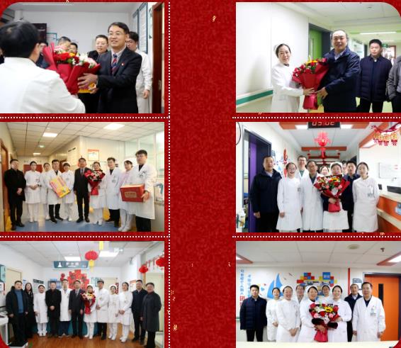 1月29日正值乙巳蛇年大年初一,漯河醫(yī)專二附院(漯河市骨科醫(yī)院、漯河市立醫(yī)院)黨委書記柴運(yùn)洪、院長(zhǎng)王齊超及院領(lǐng)導(dǎo)吳廣良、曹鵬克、鄭建新、劉國(guó)鋒、吳威等分別帶領(lǐng)各職能科室負(fù)責(zé)人深入各病區(qū)、各科室、陰陽趙分院等處看望慰問節(jié)日期間依然堅(jiān)守崗位的廣大干部職工,為每一位堅(jiān)守崗位的醫(yī)護(hù)人員和工作人員送上新春的美好祝福與誠(chéng)摯的慰問。