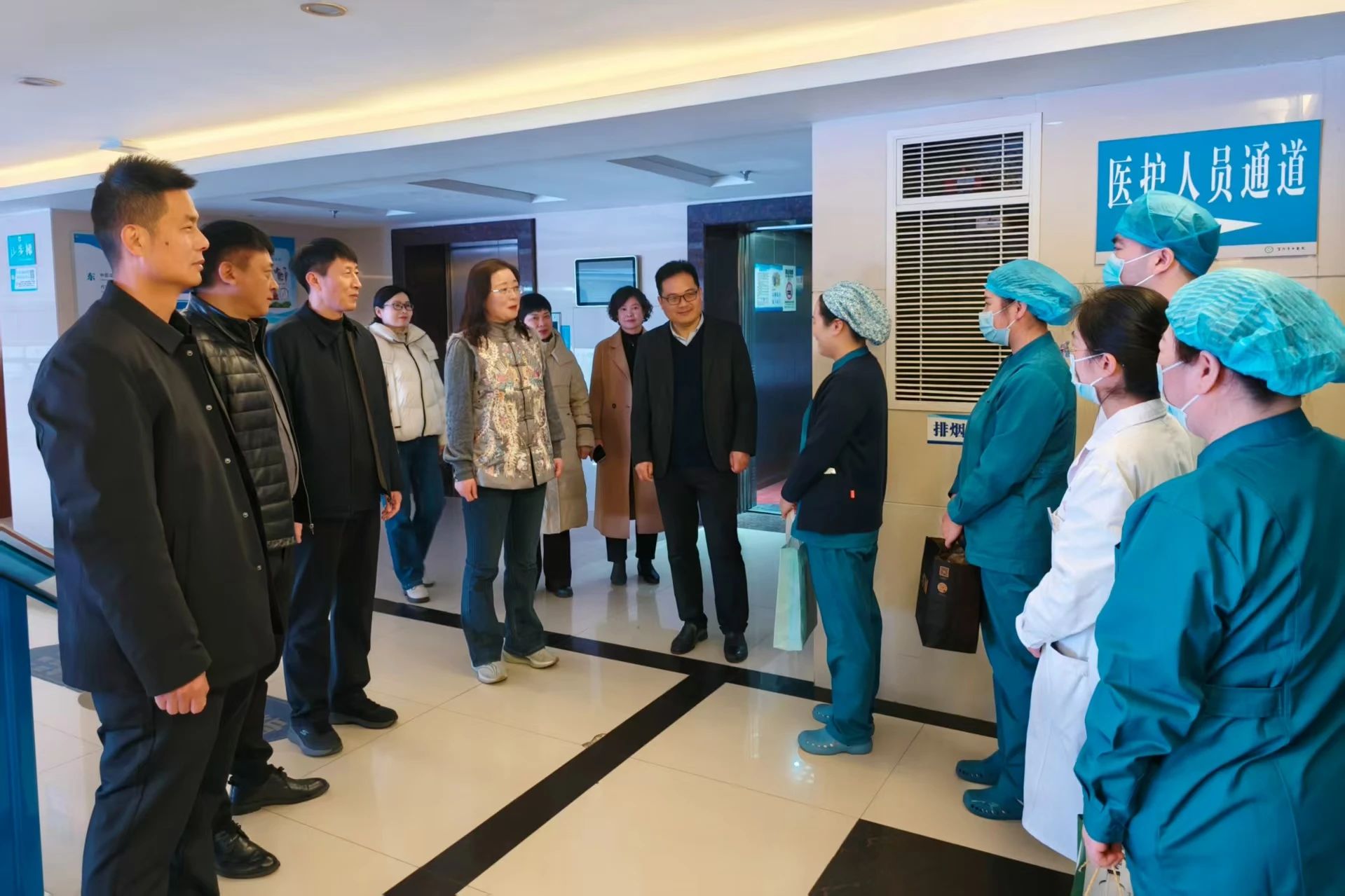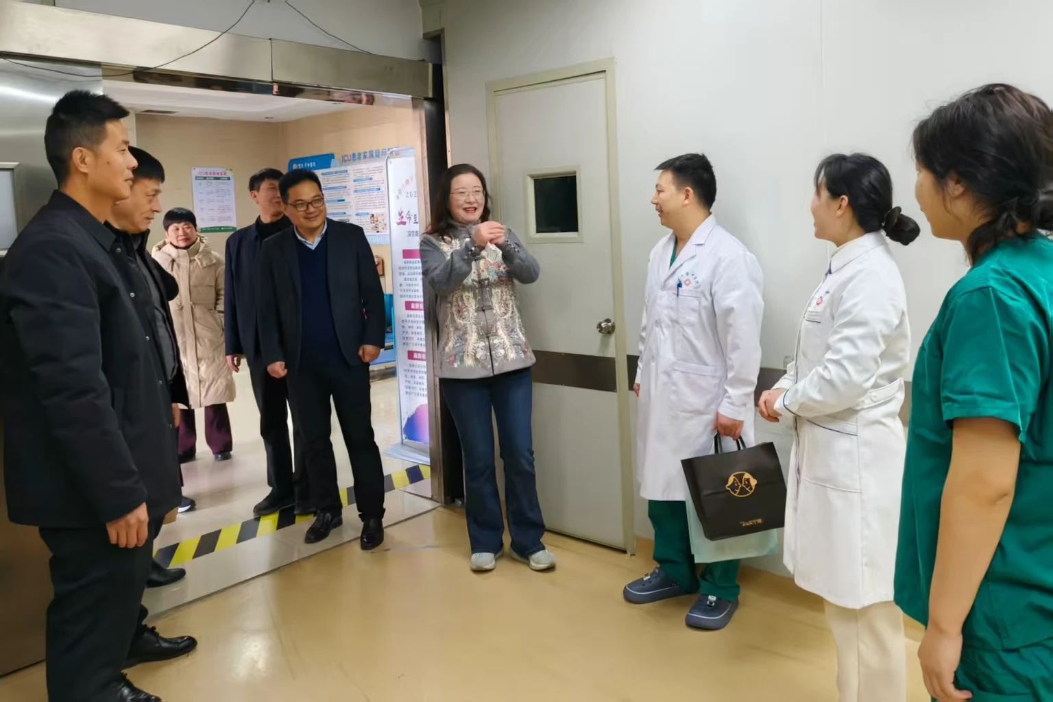 靈蛇獻(xiàn)瑞,歲啟新程。1月29日(大年初一)一大早,在濃濃的節(jié)日氛圍中,漯河市中醫(yī)院黨委書記、院長楊軼帶領(lǐng)院班子成員及相關(guān)科室負(fù)責(zé)人到臨床一線慰問春節(jié)堅守在崗的醫(yī)務(wù)人員,為他們送上牛奶、水果等慰問品,向他們致以新春的問候和美好的祝福。