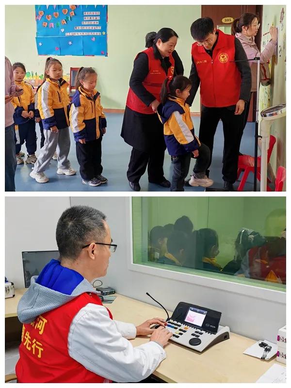 來(lái)自召陵區(qū)區(qū)直幼兒園的孩子們與市殘疾人康復(fù)服務(wù)中心太陽(yáng)班的孩子們一起參觀了測(cè)聽(tīng)室了解如何測(cè)量聽(tīng)力指標(biāo),參加了愛(ài)耳護(hù)耳知識(shí)小課堂,通過(guò)聆聽(tīng)風(fēng)趣幽默的講解直觀了解耳朵的構(gòu)造和聽(tīng)力檢測(cè)的原理,開(kāi)啟了探索聽(tīng)力奧秘的旅程,讓孩子們?cè)谳p松愉快的氛圍中學(xué)到了愛(ài)耳護(hù)耳知識(shí)。隨后市二院學(xué)雷鋒志愿服務(wù)團(tuán)隊(duì)成員為孩子開(kāi)展了聽(tīng)力、視力檢測(cè)和身高、體重檢查,并與孩子一起互動(dòng)游戲,陪伴孩子們度過(guò)了一段愉快的時(shí)光。