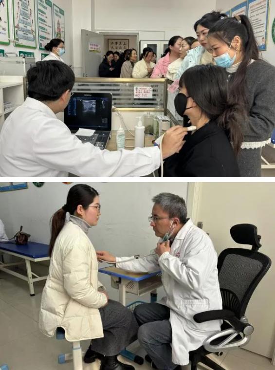 義診活動現(xiàn)場,醫(yī)療志愿者們?yōu)榕搪毠っ赓M提供血壓測量、甲狀腺彩超、體格檢查、用藥指導、健康咨詢、疾病診斷等服務(wù),發(fā)放健康知識手冊。同時針對女教職工健康狀況和需求,提供個體化的健康建議和詳細的治療方案。此次共義診100余人,發(fā)放健康宣傳資料300 余份。