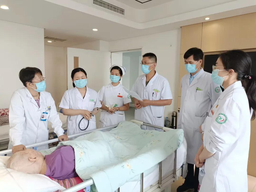 2019年初春,95歲患者方奶奶因肺部感染、誘發(fā)心肺功能衰竭首次入住老年醫(yī)學(xué)科。隨后的四年間,老人因腦血管病長期臥床,反復(fù)出現(xiàn)墜積性肺炎、感染誘發(fā)呼吸衰竭心力衰竭等反復(fù)住院17次。面對超高齡患者復(fù)雜的病情,科室啟動多學(xué)科診療模式:以老年醫(yī)學(xué)專家為主導(dǎo),聯(lián)合心內(nèi)專業(yè)、呼吸專業(yè)、康復(fù)科、營養(yǎng)科等團隊,將治療目標從“治愈疾病”轉(zhuǎn)向延長有質(zhì)量的生命周期。“高齡患者往往牽一發(fā)而動全身,方奶奶就像一盞風(fēng)中的燭火,需要我們隨時調(diào)整治療方案”。副主任醫(yī)師衛(wèi)青園回憶,有一次方奶奶因肺部感染突發(fā)呼衰心衰,團隊立即調(diào)整治療方案:在精準計算輸液量的同時,采用無創(chuàng)呼吸機改善通氣,糾正心肺功能,讓老人轉(zhuǎn)危為安。五年間,類似的精準救治上演了數(shù)十次,老年醫(yī)學(xué)科醫(yī)護團隊為老人爭取了與家人共度的五個春秋。