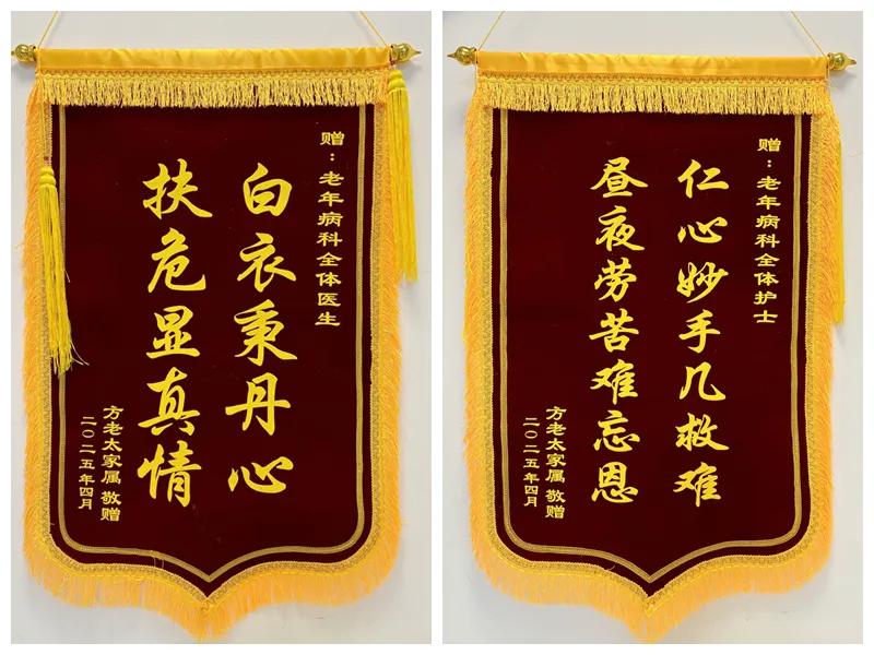近日,兩面紅底金字的錦旗被鄭重送至市二院老年醫(yī)學(xué)科。家屬哽咽著展開錦旗:“白心秉丹心,扶危顯真情”致全體醫(yī)生,“仁心妙手幾救難,晝夜勞苦難忘恩”贈與醫(yī)護團隊。這不僅是患者家屬的深情告白,是百歲老人方奶奶與老年醫(yī)學(xué)科醫(yī)護團隊五年多、1800多個日夜的生死相托,更是一個家庭對“醫(yī)者仁心”最深情的詮釋。