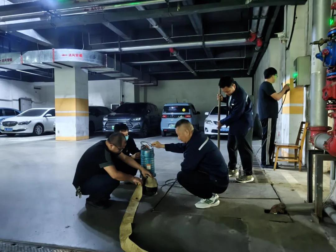演練模擬漯河市區(qū)出現(xiàn)持續(xù)強(qiáng)降雨天氣,由于短時間降雨量過大,造成雨水倒灌,致使地下車庫、配電間等重點(diǎn)地下空間區(qū)域進(jìn)水。現(xiàn)場值班發(fā)現(xiàn)險情,報告防汛總指揮,總指揮迅速啟動防汛搶險應(yīng)急預(yù)案,組織防汛應(yīng)急救援隊(duì)進(jìn)行搶險救援,保衛(wèi)人員負(fù)責(zé)疏散撤離,同心協(xié)力處置險情。