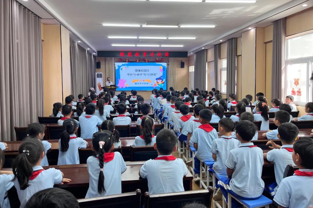 講座伊始,白紅麗醫(yī)生以“五小健康計劃(2025—2027年)”為切入點(diǎn),深入淺出地講解了兒童健康五大焦點(diǎn)問題:“小胖墩”,揭秘零食中的“脂肪怪獸”,提醒學(xué)生警惕高糖高脂陷阱,并通過“快樂運(yùn)動小游戲”倡導(dǎo)家庭與校園聯(lián)動運(yùn)動。“小骨干”,通過“脊柱側(cè)彎小課堂”,用“骨頭小樹長歪了”的比喻,形象說明脊柱變形的危害,現(xiàn)場演示“坐如松”的正確姿勢。“小眼鏡”“小星星”“小蛀牙”,分別從科學(xué)用眼、心理調(diào)適和口腔保健角度,給出實(shí)用建議,如“45分鐘用眼休息法”“營養(yǎng)餐盤搭配法”等。