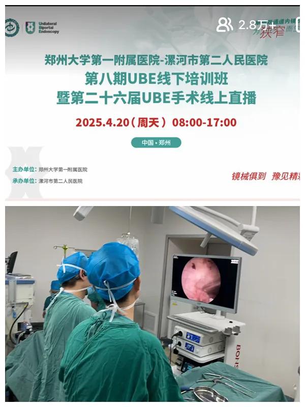 據(jù)悉,鄭州大學(xué)第一附屬醫(yī)院骨科團(tuán)隊(duì)已經(jīng)連續(xù)開展了25屆UBE手術(shù)線上直播、七期線下培訓(xùn)活動。此次將培訓(xùn)班放在市二院舉辦,是希望通過交流互動,將UBE技術(shù)的最新理念和操作技巧在漯河扎根。