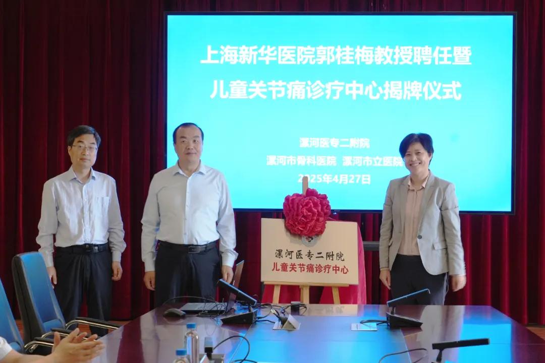 4月27日,漯河醫(yī)專二附院(漯河市骨科醫(yī)院、漯河市立醫(yī)院)舉行上海交通大學(xué)附屬新華醫(yī)院郭桂梅教授聘任暨成立“兒童關(guān)節(jié)痛診療中心”揭牌儀式。黨委書記柴運(yùn)洪、院長王齊超,副院長吳廣良、鄭建新,紀(jì)委書記劉國鋒出席,兒科、小兒骨科、風(fēng)濕免疫科和康復(fù)科等科室人員參加會(huì)議。