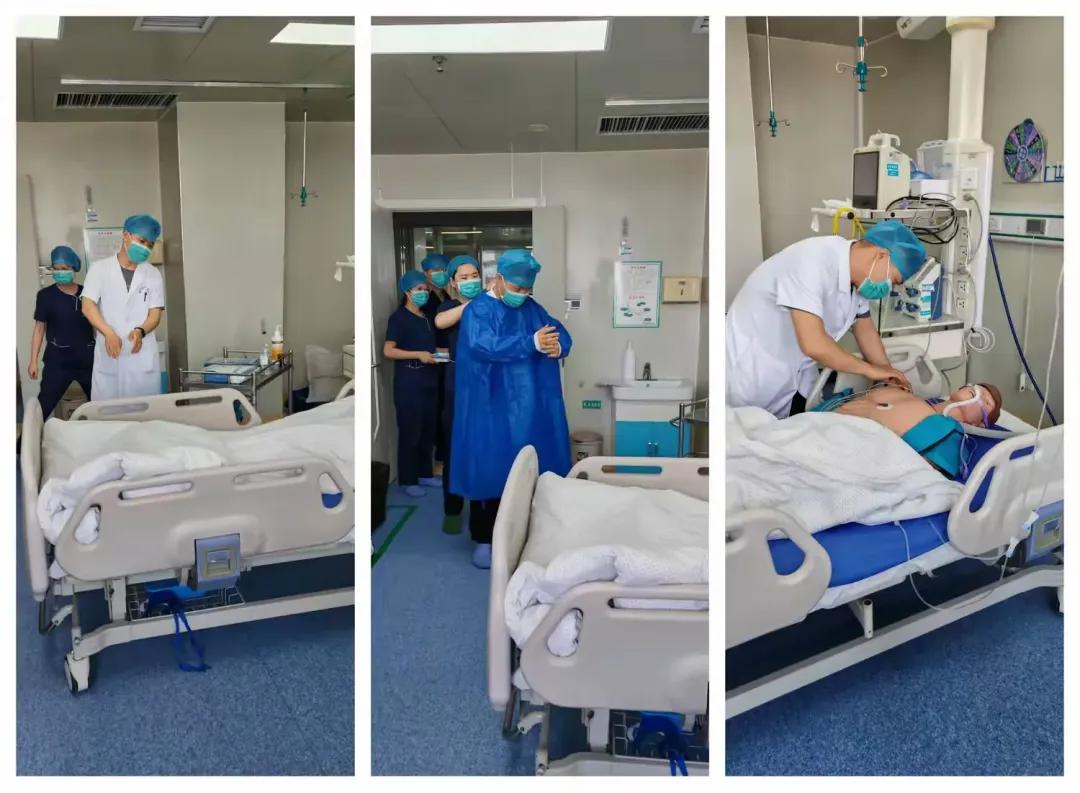 本次應(yīng)急演練由重癥醫(yī)學(xué)科主任王鮮穎任總指揮,護(hù)士長趙艷庚任組長,馮文靜帶領(lǐng)應(yīng)急演練小組成員(聶方方、牛亞奇、杜康、劉艷艷、呼吸治療師張紅杰、值班醫(yī)生楊廣華)模擬一例心力衰竭合并膿毒癥休克患者出現(xiàn)呼吸、心臟驟停的應(yīng)急演練。重點(diǎn)檢驗(yàn)"急救能力、團(tuán)隊(duì)協(xié)作、涵蓋應(yīng)急響應(yīng)、設(shè)備操作、醫(yī)療救護(hù)等全流程環(huán)節(jié)。