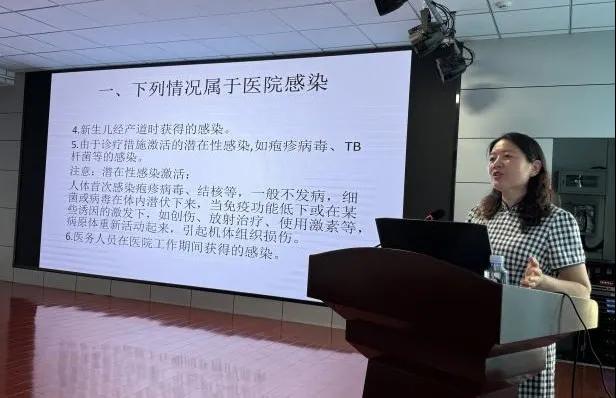 授課現(xiàn)場(chǎng),感控科主任楚巧紅以《醫(yī)院感染診斷標(biāo)準(zhǔn)與案例分析》為題為近百名醫(yī)務(wù)人員進(jìn)行分享。楚巧紅主任結(jié)合多年臨床經(jīng)驗(yàn),以通俗易懂的語言、生動(dòng)的案例,圍繞感染分類、感染的診斷原則、各部位醫(yī)院感染診斷、常見的醫(yī)院感染部位、醫(yī)院肺炎(NP)流行病學(xué)等內(nèi)容展開講解。重點(diǎn)剖析了多重耐藥菌感染、呼吸機(jī)相關(guān)肺炎等疑難案例的診斷流程。隨后,參會(huì)人員圍繞內(nèi)容及實(shí)際臨床工作中遇到的實(shí)際問題進(jìn)行提問,楚巧紅主任系統(tǒng)解答,反響熱烈。(盧 闖 韓書環(huán) 劉 旭 袁錦鈺)